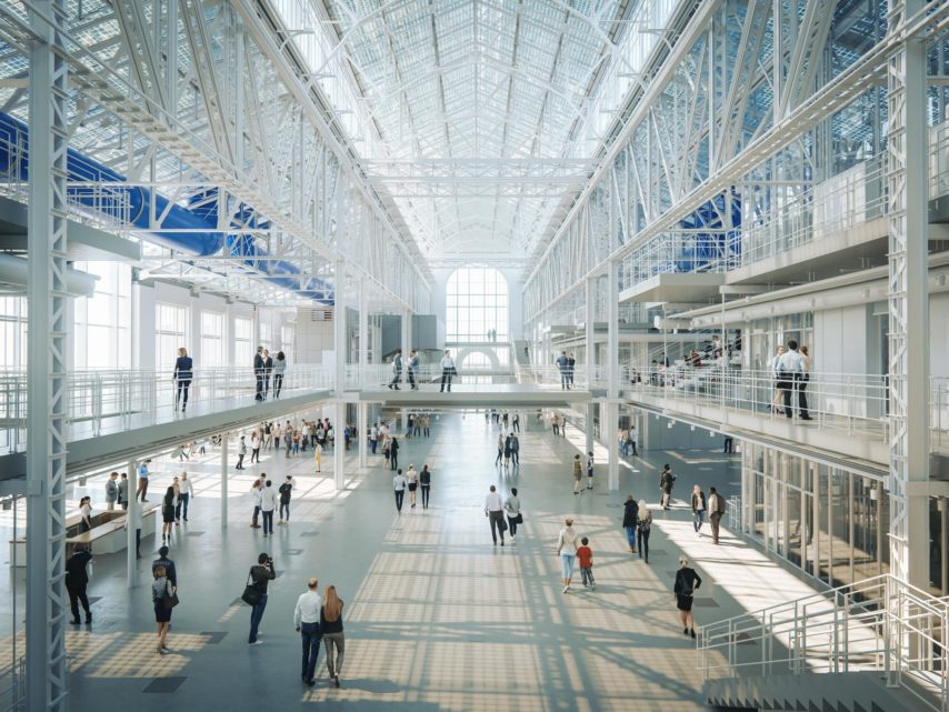 Экологичной станет и система вентиляции здания: трубы бывшей электростанции после реконструкции начнут забирать чистый воздух с высоты 70 метров и подавать его вниз, где он будет равномерно распределяться по всему помещению. Объем подачи чистого воздуха при необходимости можно будет увеличивать.