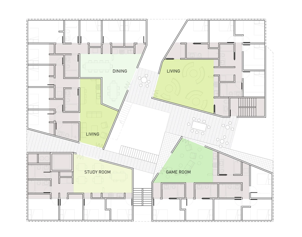 Проект предлагает «важную и жизнеспособную альтернативу» традиционным моделям жилья в Лос-Анджелесе и обеспечивает необходимую плотность проживания: благодаря растущему спросу на доступное жилье в городе модель коливинга кажется все более привлекательной. Каждый блок коливинга включает кухню, гостиную и четыре или пять спален. Размеры спален варьируются от 9,6 до 12 кв. метров. Все комнаты меблированы. В каждом блоке от двух до четырех ванных комнат.