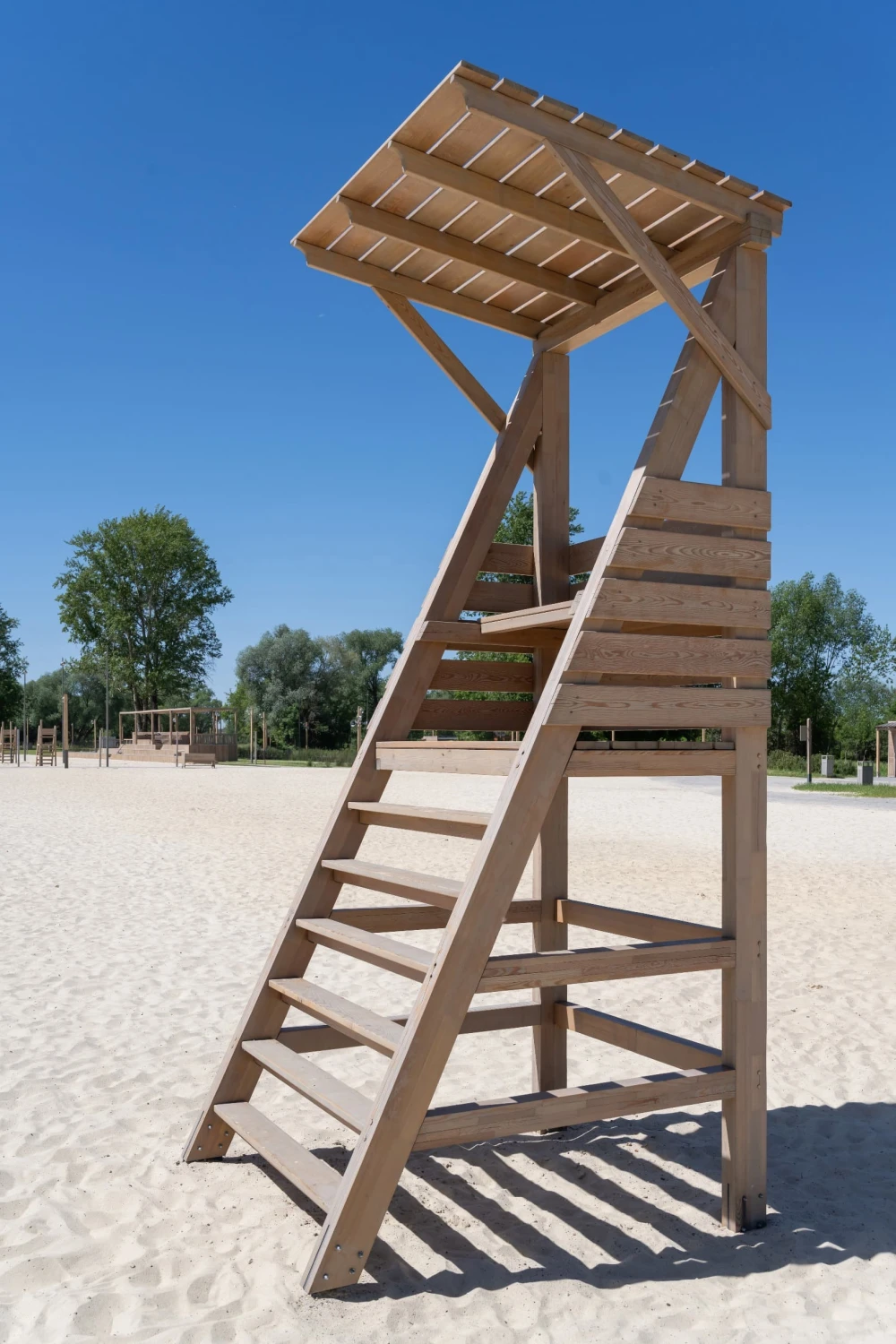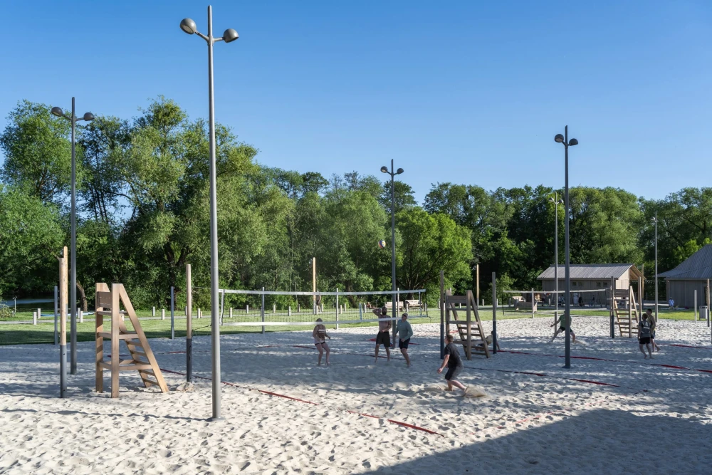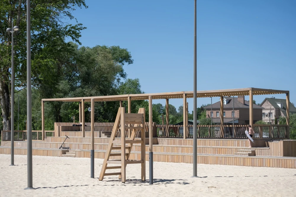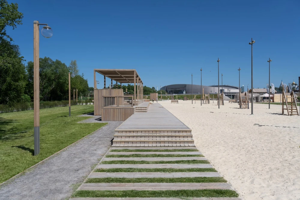Общая площадь объекта составляет около 30 га, поэтому реализация будет включать нескольких этапов. Первый этап направлен на комплексное благоустройство активной зоны площадью 5 га с современной пляжной инфраструктурой: фудкортом, пляжем, детской площадкой, пирсами для сапов и вейков, велодорожками, амфитеатром, площадками для пляжного волейбола и зонами тихого отдыха.