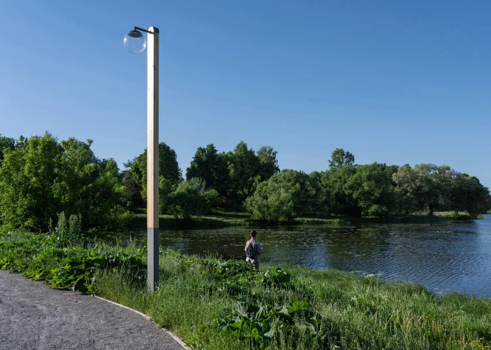 «Навигационные элементы из светлого дерева, изготовленные с применением специальных столярных технологий, отсылают к традициям русского деревянного зодчества. Форма фонарей была разработана нашей командой специально для Коломны и выполнена из натурального дерева, что является редкостью для общественных пространств. Еще одной особенностью проекта стало использование в качестве покрытия деревянной брусчатки с точной геометрией укладки — деревянные бруски расположены на равном расстоянии друг от друга».