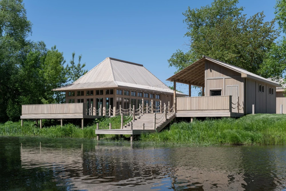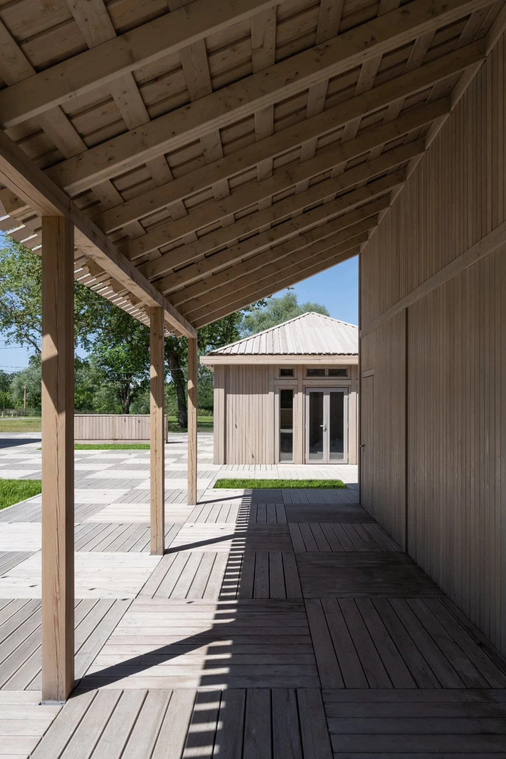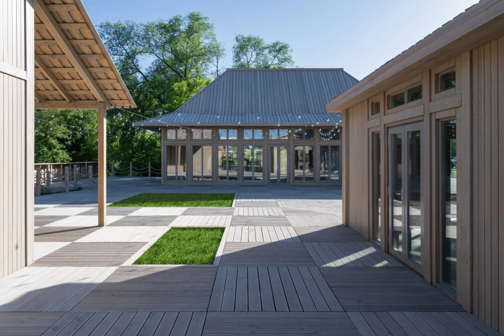 Основой планировочного решения стало бережное отношение к сложившейся структуре территории. Исторические свидетельства об использовании этих земель под пашни и сады подсказали принцип зонирования, где каждая функциональная область соответствует традиционным аграрным типологиям. Например, регулярная планировка активной зоны отсылает к геометрии огорода — так архитекторы создали узнаваемый образ без нарушения природного ландшафта.