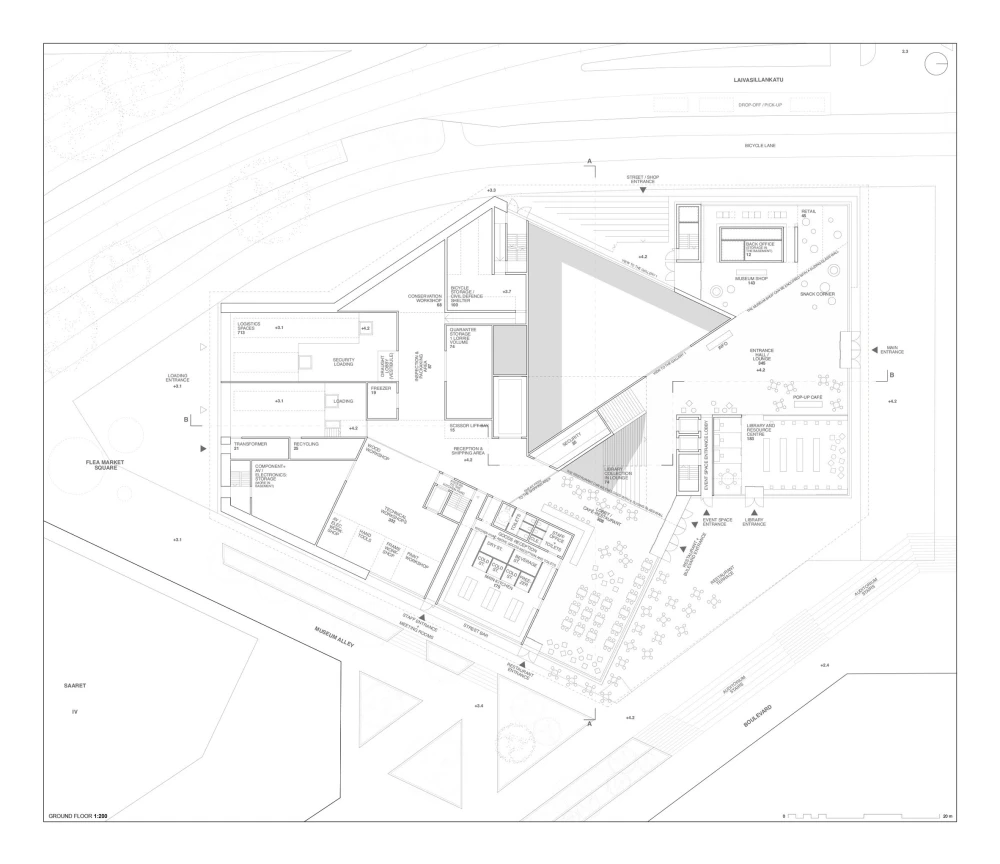 Строение площадью 10 050 кв. метров призвано стать современной культурной достопримечательностью, дружественной посетителям, и гармонично дополнить городской ландшафт. На визуализациях показана геометричная постройка, расположенная вокруг центрального атриума, с треугольными окнами, пронизывающими наклонные фасады из переработанного кирпича. Помимо выставочного пространства, в Музее архитектуры и дизайна Хельсинки расположатся библиотека и открытая терраса на верхнем уровне. Отдельное внимание архитекторы уделили устойчивости, сведя к минимуму углеродный след проекта. Ожидается, что строительство начнется в 2027-м, открытие запланировано на 2030 год.