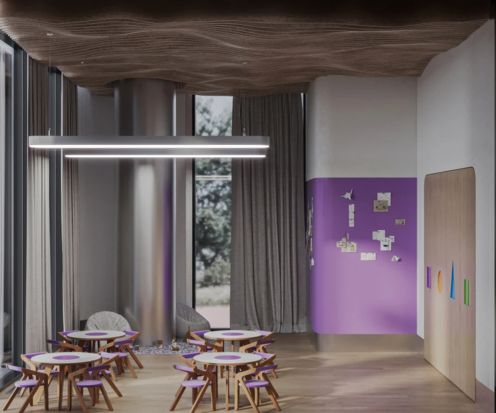 «В саду предусмотрены многофункциональный актово-спортивный зал и групповые пространства, причем у каждого есть своя собственная раздевалка, буфетно-раздаточная зона и санитарные комнаты (раковины и унитазы в них установлены на уровнях, удобных для детей разных возрастов). Также будет создана большая лаунж-зона для родителей, чтобы им было удобно ожидать детей и общаться с педагогами, кабинет для медицинского персонала с возможным изолятором и большое количество помещений для дополнительных занятий: для логопеда, психолога, занятий программированием и арт-практик. Во всех помещениях благодаря удачной планировке от застройщика есть окна, так что в пространство поступает максимум естественного света. Мы используем безопасные материалы и мебель: у кроваток, шкафов, столов и стульев нет острых углов, что минимизирует риск травматизации ребенка»