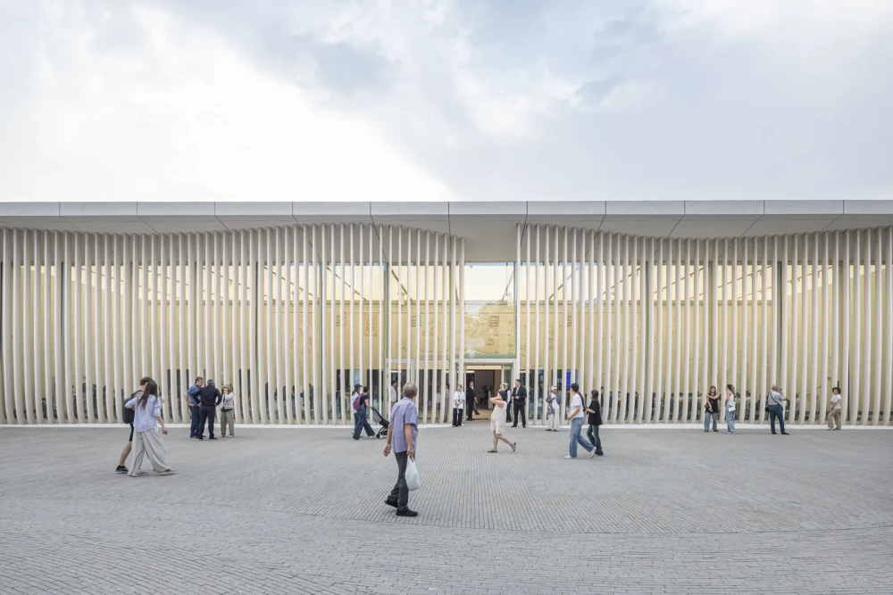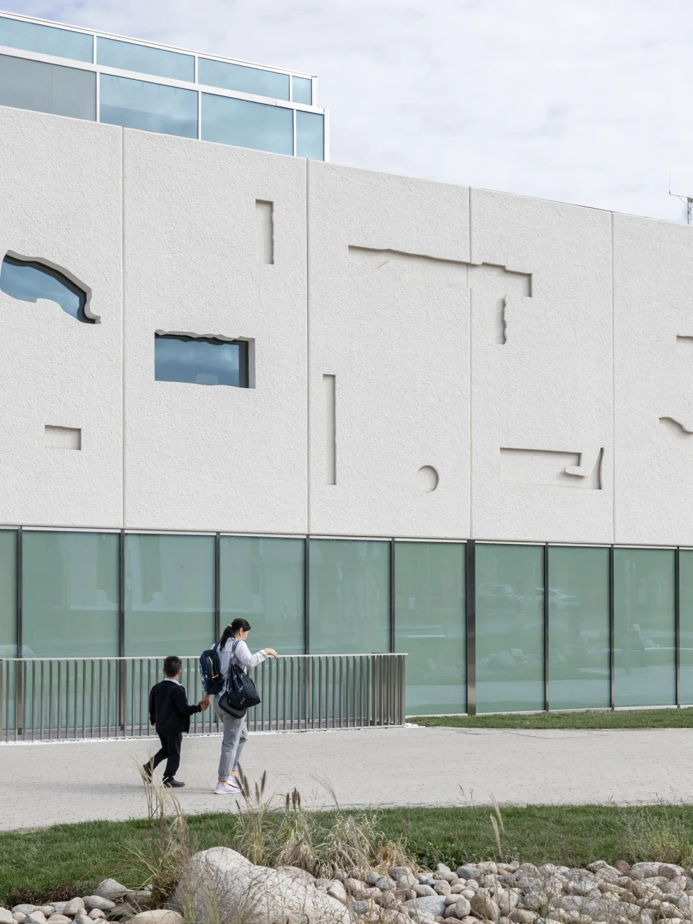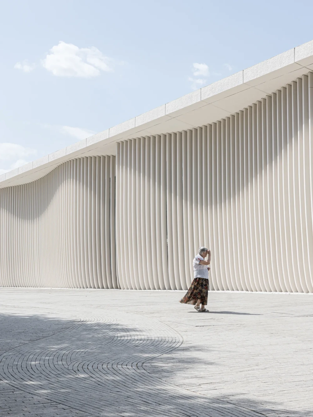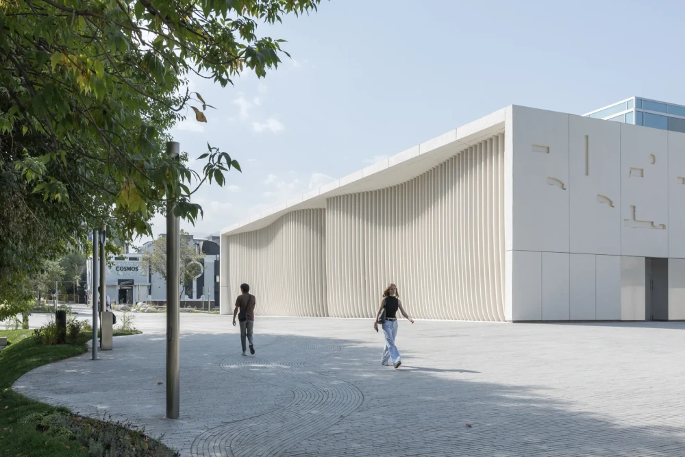 Вдохновление архитекторы прежде всего искали в истории и культуре Казахстана. Новую бетонную «оболочку» здания украшают петроглифы, отсылающие к древним символам, элементам панно Сидоркина и таинственным геоглифами, найденным по всей стране. Главный фасад навеян кочевой космологией. Металлические рейки, закрывающие панорамное остекление, формируют плавную волну, которая символизирует диалог между Тенгри — Небом и Умай — Землей.