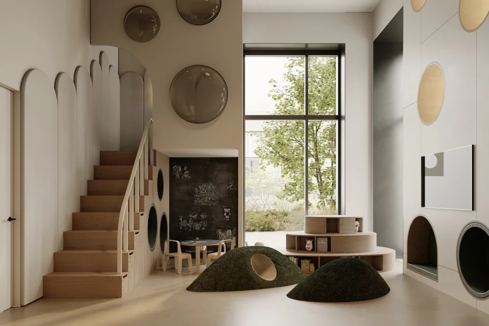 Для того, чтобы впустить в дом природу и свет, архитекторы спроектировали лобби с потолками высотой 5 метров и панорамным остеклением. Здесь размесятся стойка ресепшен и мягкая зона, в то время как почтовые ящики вынесли в отдельный мейл-рум, чтобы сохранить ощущение простора и воздуха. Из гранд-лобби можно попасть в коворкинг и игровую, доступные только для резидентов. Уникальная локация, продуманная архитектура и внимание к деталям делают проект The Lake недвижимостью, в которой хочется жить.