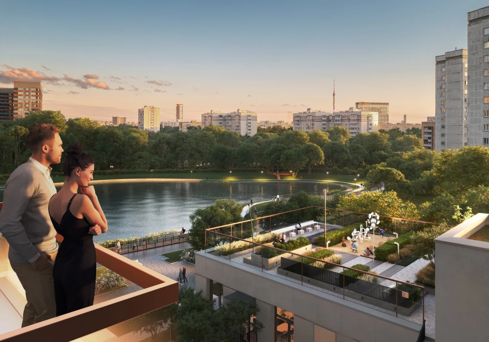 Одну из таких редких на рынке недвижимости локаций предлагает девелопер ГК ФСК. Его проект так и называется: The Lake, намекая на главный источник вдохновения и достоинство проекта — расположение непосредственно на берегу Капустинского пруда вблизи одноименного парка. Архитекторы бюро NOWADAYS подчеркнули основную идею не только характерной каскадной структурой здания, благодаря которой образуются террасы с видом на пруд и зелень парка, но и необычным материалом в отделке фасада — для него выбрали плитку с фактурой под облицовочный кирпич, которая, мерцая, вторит бликам на поверхности пруда.
