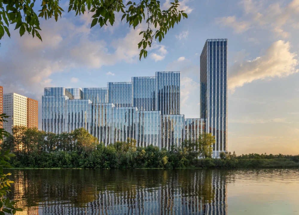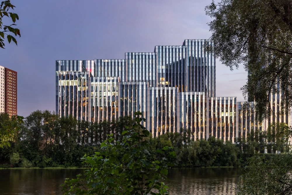 Все эти здания — шедевры минимализма в разных его проявлениях, но все их объединяет одно: каждый подчеркивает связь архитектуры и окружающей среды, проникновение природы внутрь здания. Таким стал и ЖК «Береговой» — премиальный квартал на берегу Москвы-реки от девелопера «Главстрой». Это пример органичной взаимоинтеграции архитектуры и окружающего ландшафта: здания разной высоты отсылают к волне и плавным изгибам реки, а фактура внешней отделки из анодированного алюминия и стекла воссоздает эффект течения. В фасадах отражается Москва-река, что только усиливает нужное впечатление. «Мы поняли, что главное свойство воды — текучесть, изменчивость. И сверхидеей для «Берегового» стала гибкость и адаптивность», — рассказывает архитектор проекта Иван Греков.