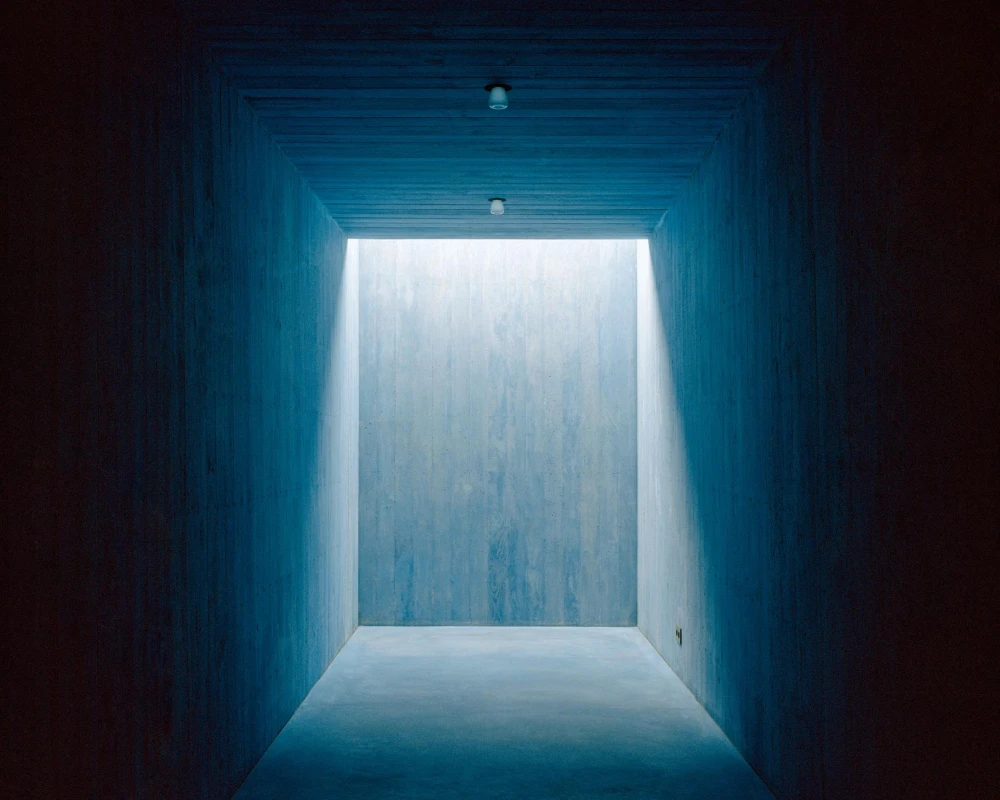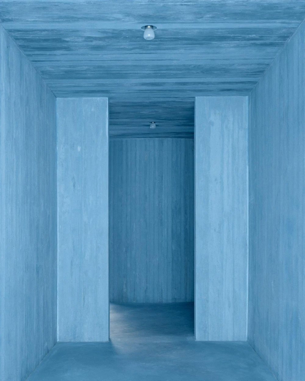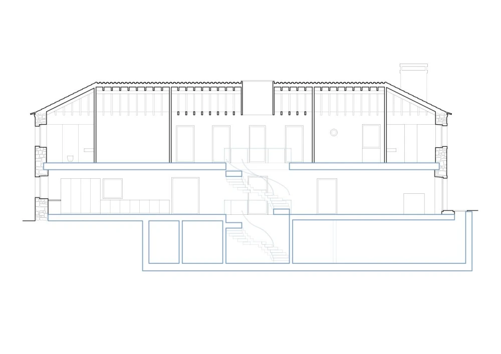 Проект реализован в рамках реконструкции здания и создания новых сценариев его использования. Первоначально здесь размещался винный погреб для хранения бочек и бутылок, а также жилые помещения для рабочих и обслуживающего персонала поместья. Правила запрещали значительно изменять внешний облик исторического здания, поэтому архитекторы сосредоточили свое внимание на интерьере. Как только ранее существовавшая конструкция была расчищена, был залит новый остов из синего пигментированного бетона.