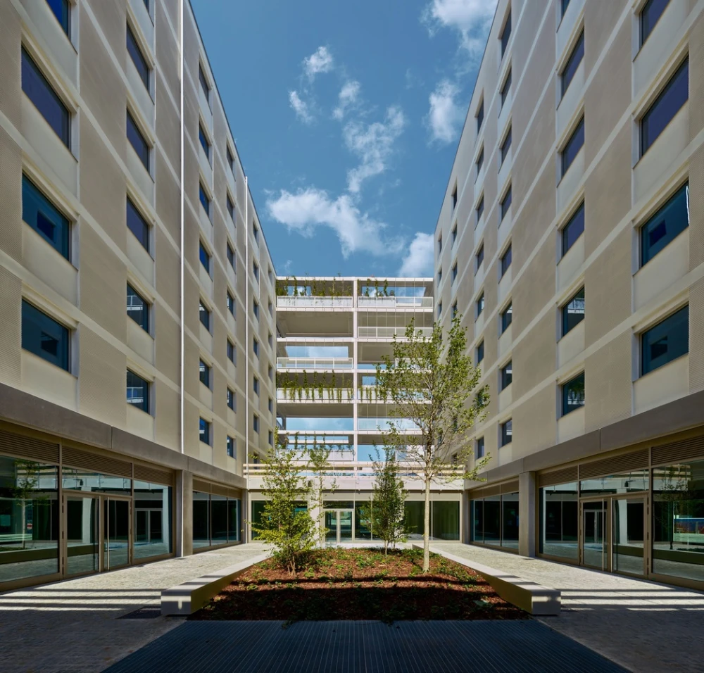 Общественные зеленые зоны, спроектированные Мишелем Девином (Michel Desvigne), полностью интегрированы в инфраструктуру района, что способствует пешеходной доступности и экологической непрерывности. Внутренние помещения, включая фитнес-центры, зоны коворкинга, рестораны и медицинские пункты, будут преобразованы в общественные площадки после Игр. Это решение гарантирует, что олимпийское наследие станет частью долгосрочной социальной инфраструктуры.