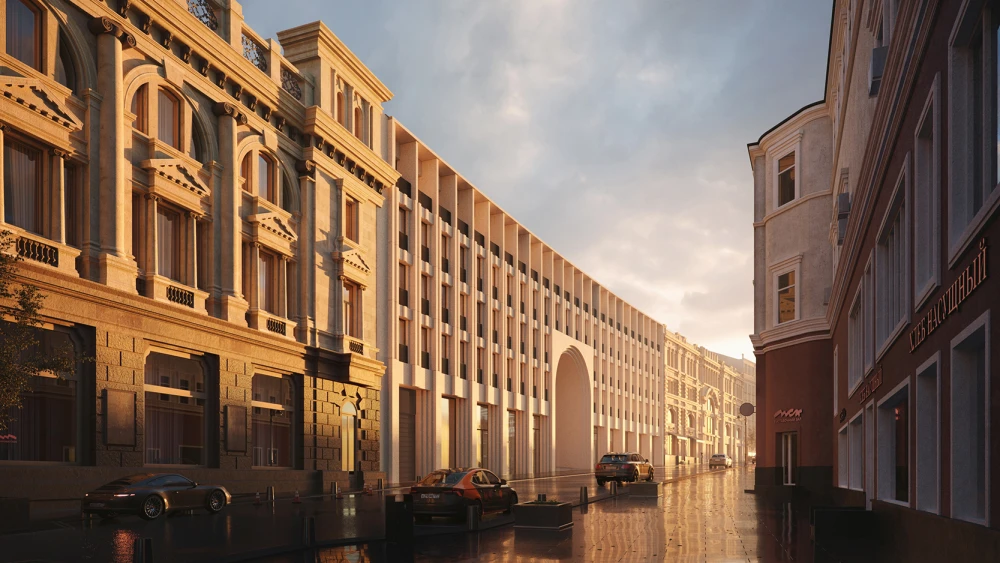 Здесь, между улицами Рождественка и Кузнецкий Мост и Варсонофьевским переулком, сосредоточены здания разных веков и стилей: это палаты Тверского подворья XVII века, дома конца XIX века, начала 1990-х и второй декады 2000-х. Перед девелопером стояла нетривиальная задача: важно было разработать проект, который впишется в такую эклектичную историческую застройку, но при этом не будет мимикрировать под нее, а сохранит свою идентичность и сможет рассказать по-новому историю этого красивого места.