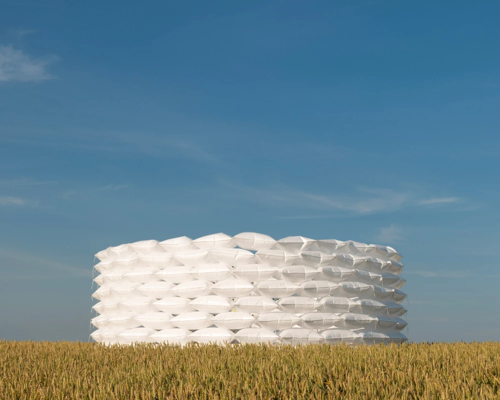 Понятие «мягкой силы» связано и с исторической ролью Франции в формировании глобального культурного контекста. Установленная среди золотых пшеничных полей конструкция напоминает о гармонии и изобилии земли, дарующей человечеству жизнь. Формы из подушек уложены в круг размером 3 х 7 метра и напоминают медитативное пространство, где можно побыть в тишине. Благодаря этому атрибут конфликта претерпевает материальную символическую трансформацию.