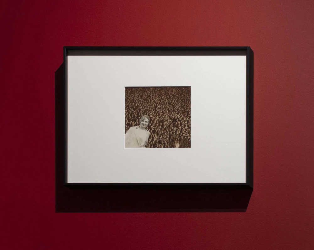Александр Житомирский, классик советской визуальной культуры, мастер политического фотомонтажа, плакатист и карикатурист, в своей творческой практике часто использовал прием наложения изображений для создания многослойных и насыщенных символизмом композиций. В этой работе он накладывает фотографию невесты Эрики на многогранную, многоликую толпу, формируя сложную диспозицию, в которой идеализированная личность оказывается на фоне массовости. Такое противопоставление раскрывает внутреннее напряжение между индивидуальностью и коллективностью — между единственным идеализированным образом и абстрактным, порой безликим коллективом. Работы Житомирского не были просто художественными экспериментами: они несли четкую идеологическую задачу, свойственную советскому искусству того времени. Они стремились показать образ «нового человека» — одну из ключевых концепций советской идеологии — как одновременно самостоятельную личность и неотъемлемую часть большого социального и политического целого.