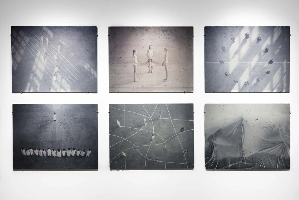 Особое внимание в серии уделяется контрасту между изображением и материалом, на котором оно представлено. Например, фотографии девушек, одетых в воздушные белые одежды, напечатаны на грубых бетонных плитах. Такое необычное сочетание мягкости, эфемерности и телесности человеческих образов с жесткой, неподатливой текстурой бетона создает сильный визуальный эффект. Это усиливает восприятие заложенной идеи — столкновения идеала с суровыми и непреклонными условиями окружающего мира. Такая композиция не только подчеркивает противостояние между мечтой о единении и факторами реальности, но и раскрывает глубокую философскую проблему: насколько возможно сохранить чувства тепла, уюта и эмоциональной близости в условиях, где среда кажется холодной, тяжелой и враждебной.