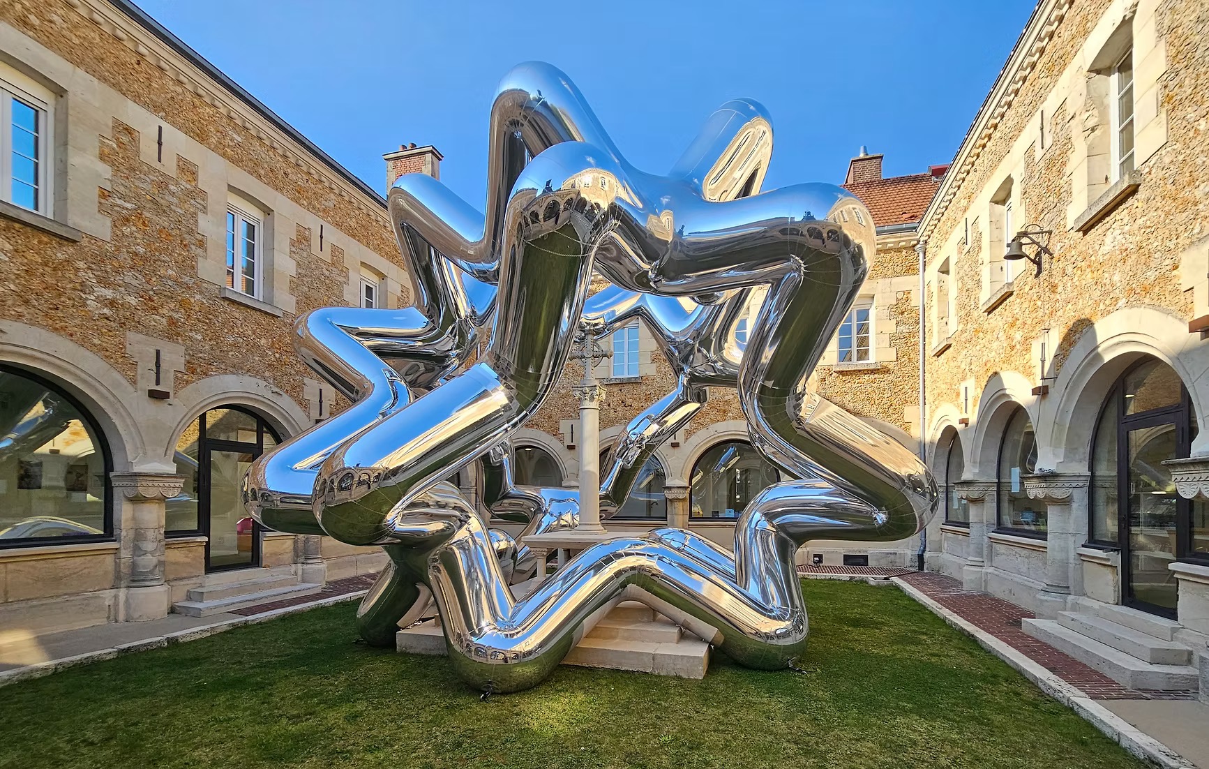 Во дворе библиотеки Ludo-Médiathèque d'Étrépagny художник из Лиона Сирил Ланселан установил геометричную надувную скульптуру Circle Stars в рамках групповой выставки Spot. Инсталляция с зеркальной поверхностью похожа на скопление гигантских звезд, которые одновременно освещают и поглощают свет, искажая ландшафт.