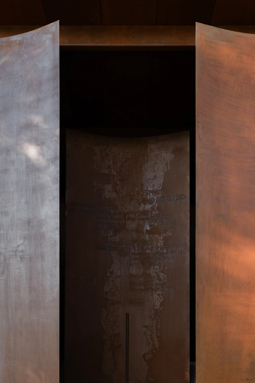 Павильон из кортена или атмосферостойкой стали образует стены, составленные из дугообразных пластин — вогнутых и выгнутых, чередующихся между собой. Бархатистый и фактурный внешний слой ржавчины придает особую выразительность и обеспечивает долговечность. Кортену не страшны дождь, снег и перепады температуры. Проект реализован совместно с АРХИТАЙЛ и IRONLAB.