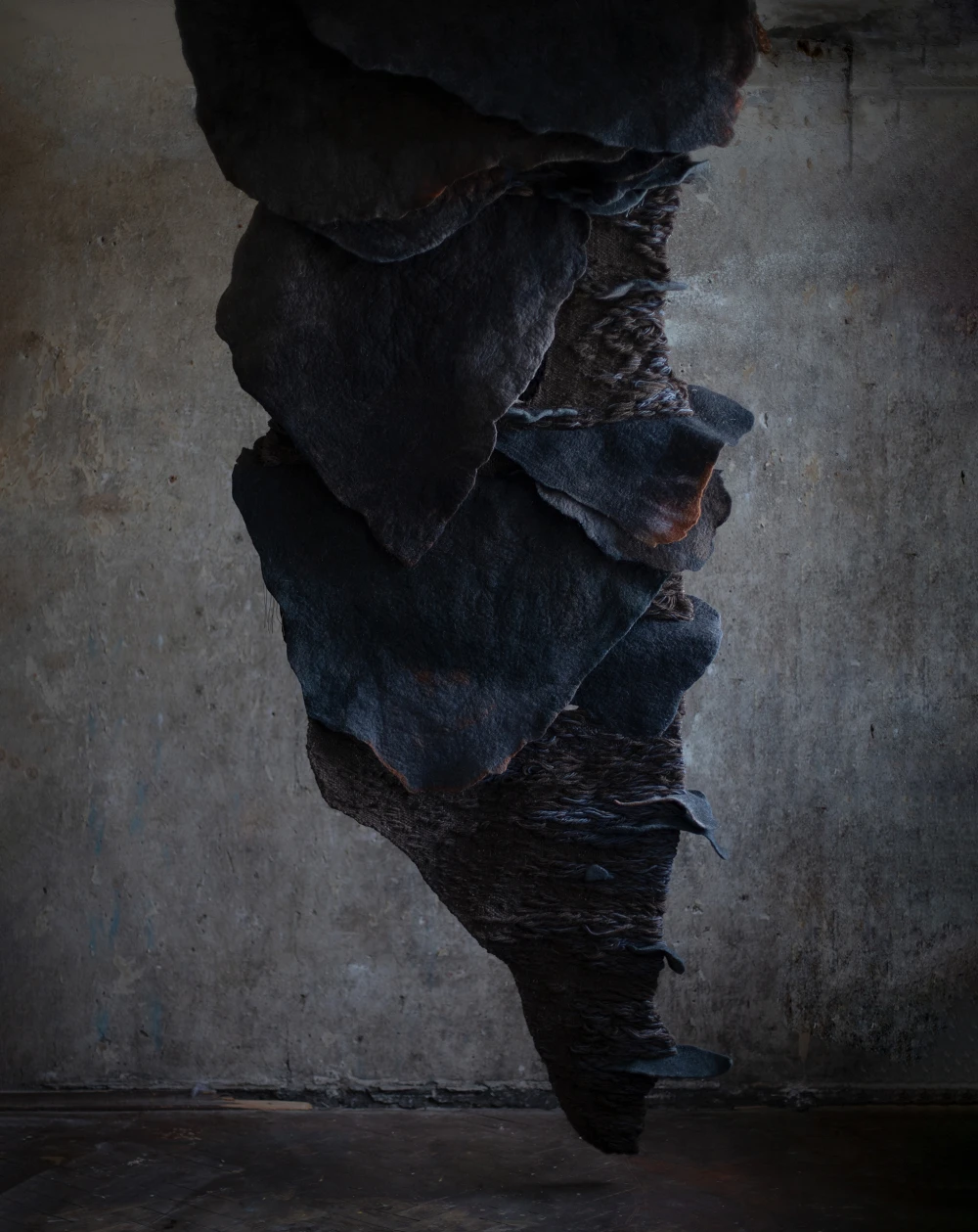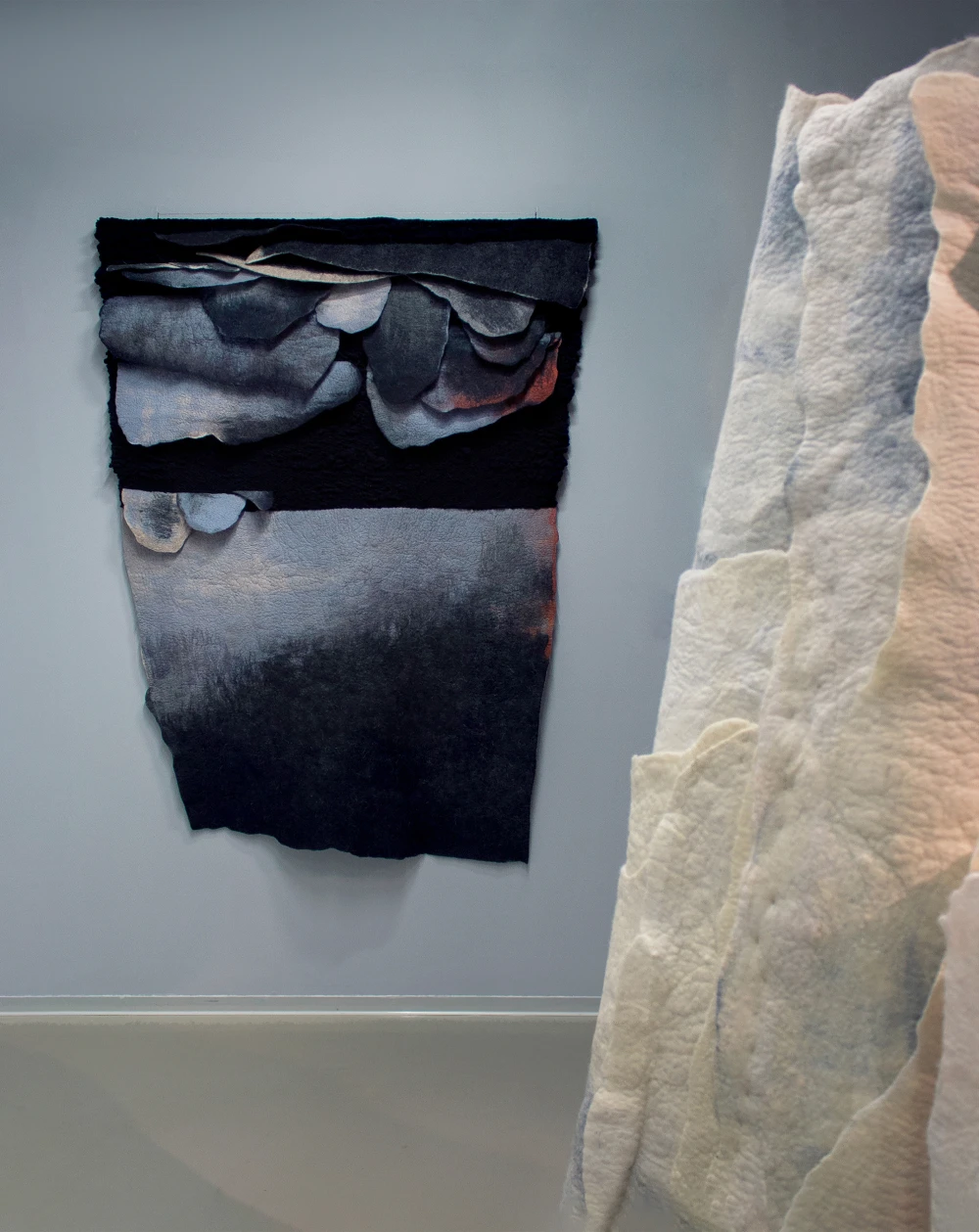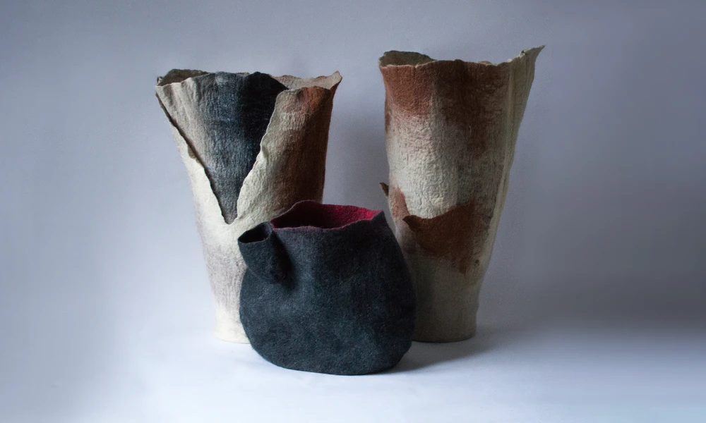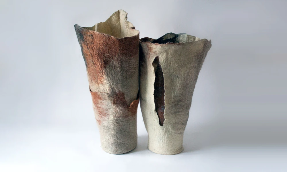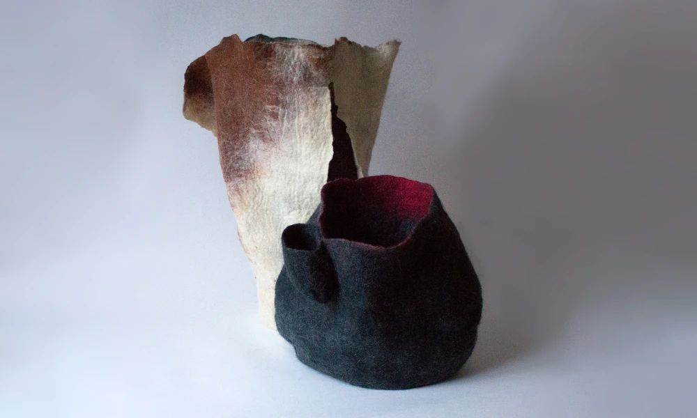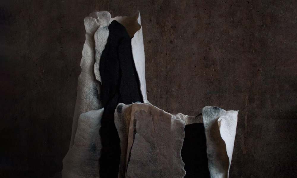 Зоя Ленденская-Большакова, выпускница академии Штиглица, работает с разнообразными формами fiber art, но войлок предпочитает большинству других текстильных материалов. В ее художественной практике он может быть декоративным и одновременно пространственно развернутым. С его помощью художница формирует среду, задает масштаб, удерживает тишину, а плотность и вес войлока ощущаются физически.