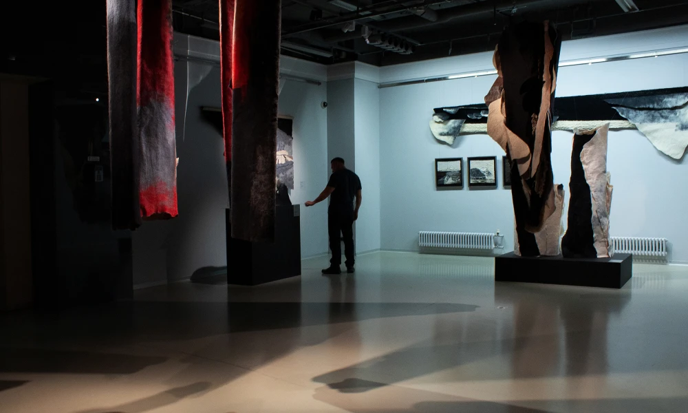 Традиционная техника войлоковаляния сохраняет ремесленную основу, но в этих работах превращается в выразительную художественную форму. При этом в них считывается память о процессе, о времени, об усилии, о повторяющемся движении рук. И эта «медленная» логика производства напрямую влияет на способ восприятия выставки. В морозные зимние дни эта экспозиция смотрится особенно убедительно.