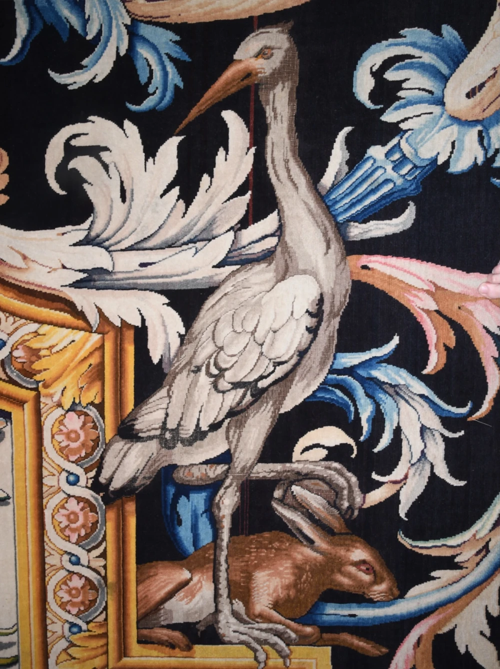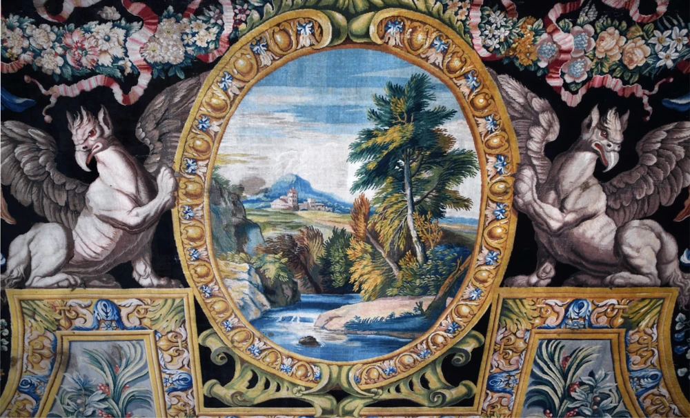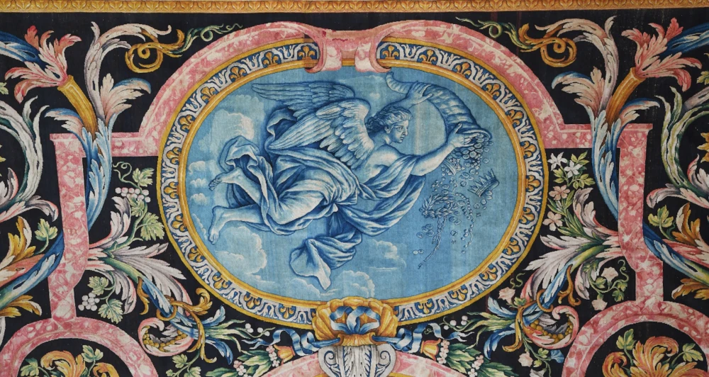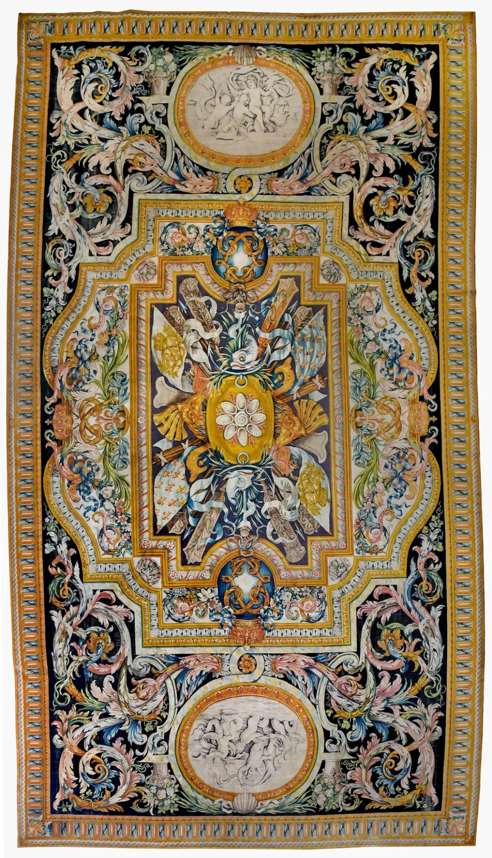 Важно подчеркнуть, что изобразительный язык этих ковров открыл новую страницу в истории европейского ковроткачества. Ковры, созданные для Большой галереи Лувра, включали архитектурные картуши, витые ленты, акантовые листья, мифологические сцены и эмблемы королевской власти — элементы, которые впоследствии стали характерными для французской декоративной традиции. Такой подход был принципиально новым: если прежде европейские ковры в основном заимствовали восточные орнаменты, то мануфактура Савоннери впервые ввела в ковроткачество полноценный европейский художественный язык с его сюжетностью, аллегорией и визуальной логикой, близкой к барочной живописи и архитектуре XVII века.