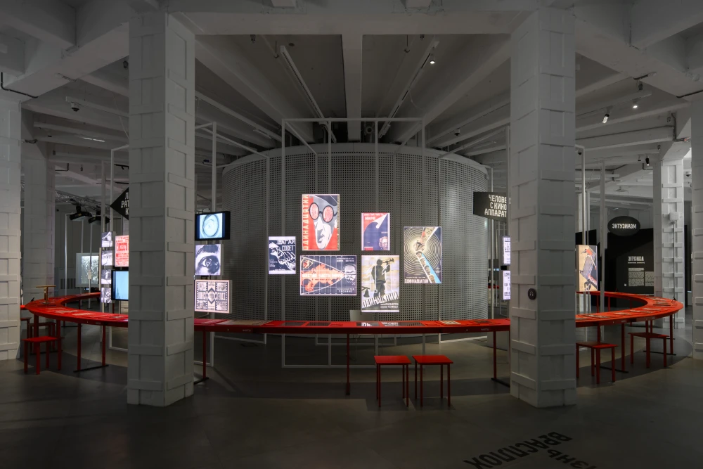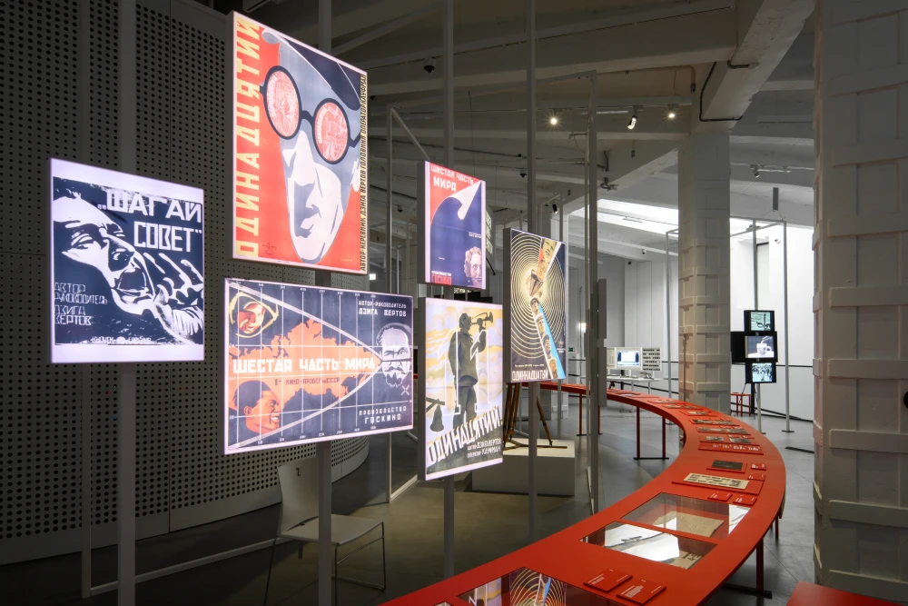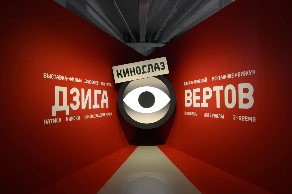 Многослойное пространство выставки «Дзига Вертов. Киноглаз» спроектировано музейным бюро Planet9 под руководством Агнии Стерлиговой. Экспозиция, напоминающая в плане бобину с кинопленкой, строится по хронологическому принципу, рассказывая о главных событиях творческой биографии режиссера, его группы «киноки», единомышленников, критиков и последователей.