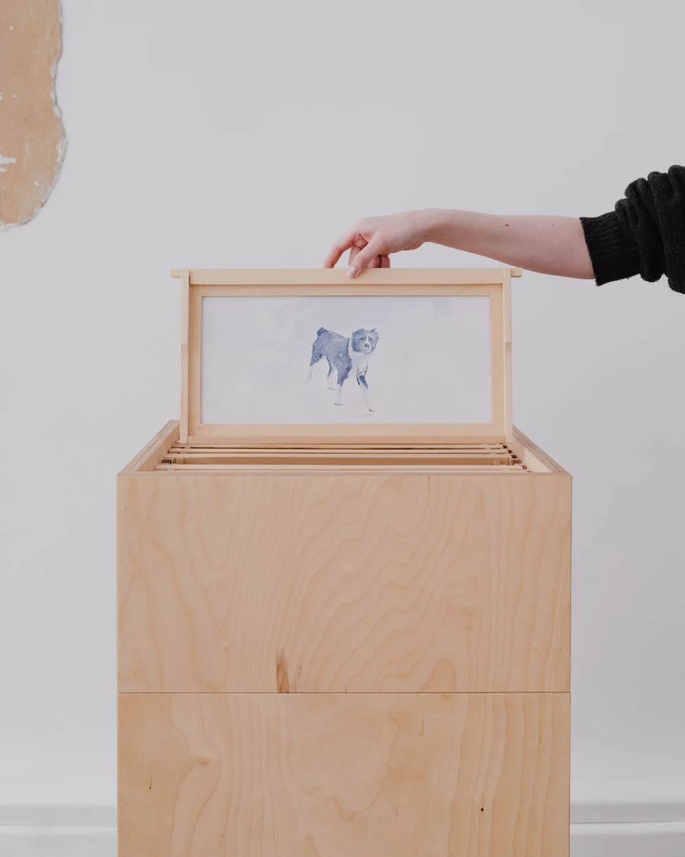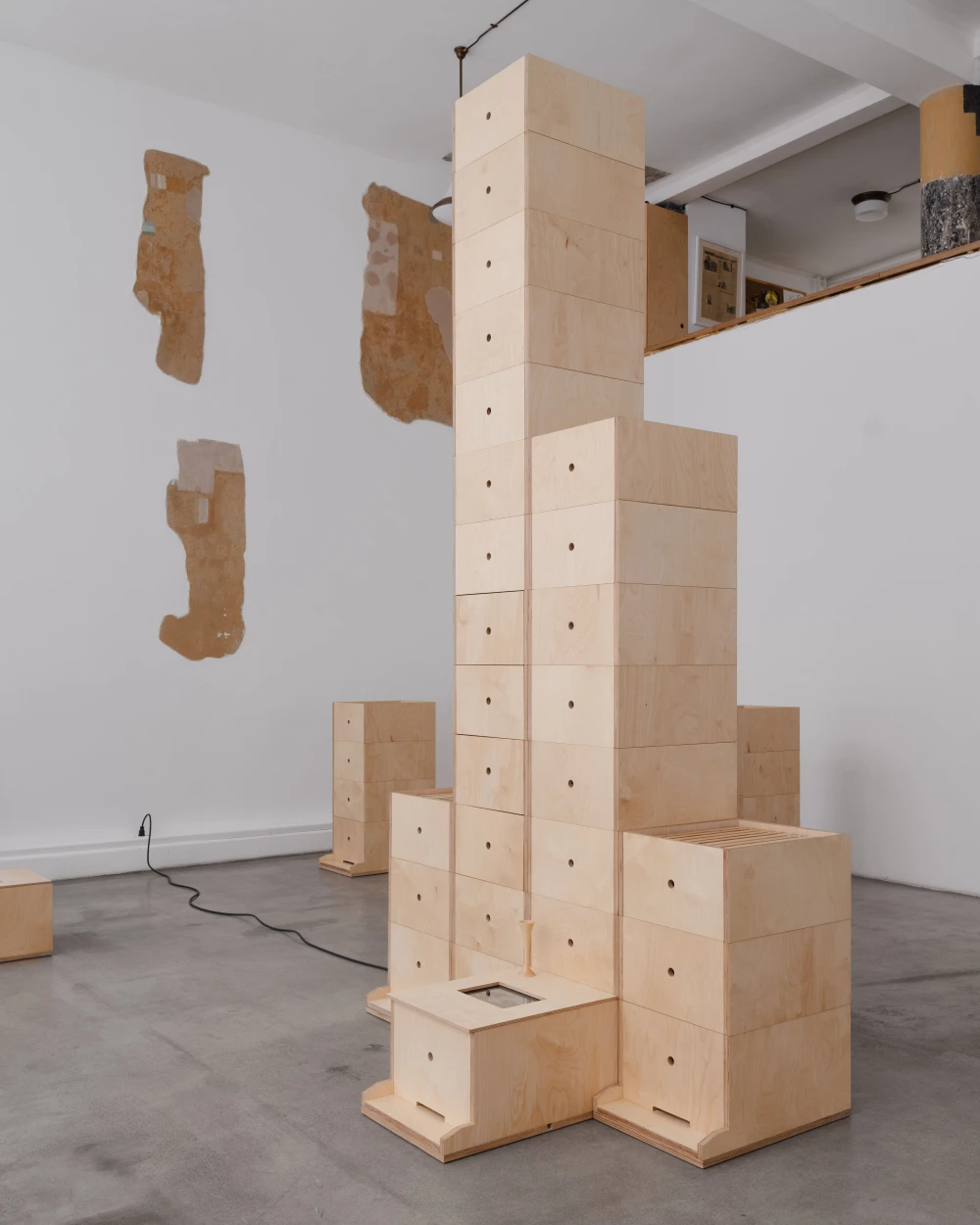 Инсталляция «Рой», расположившаяся на первом этаже коммунального блока, навеяна образом улья, но вместо сот в сложенных друг на друга ящиках находятся графические работы — обрывки воспоминаний. Зарисовки разложены стройными рядами, как в картотеке, и зрителям предлагается самостоятельно доставать их из ящиков. Дополняют инсталляцию видеозаписи, представленные на небольших экранах, встроенных в фанерные короба, и звуковое сопровождение, услышать которое можно, приложив стетоскоп к центральной башне.
