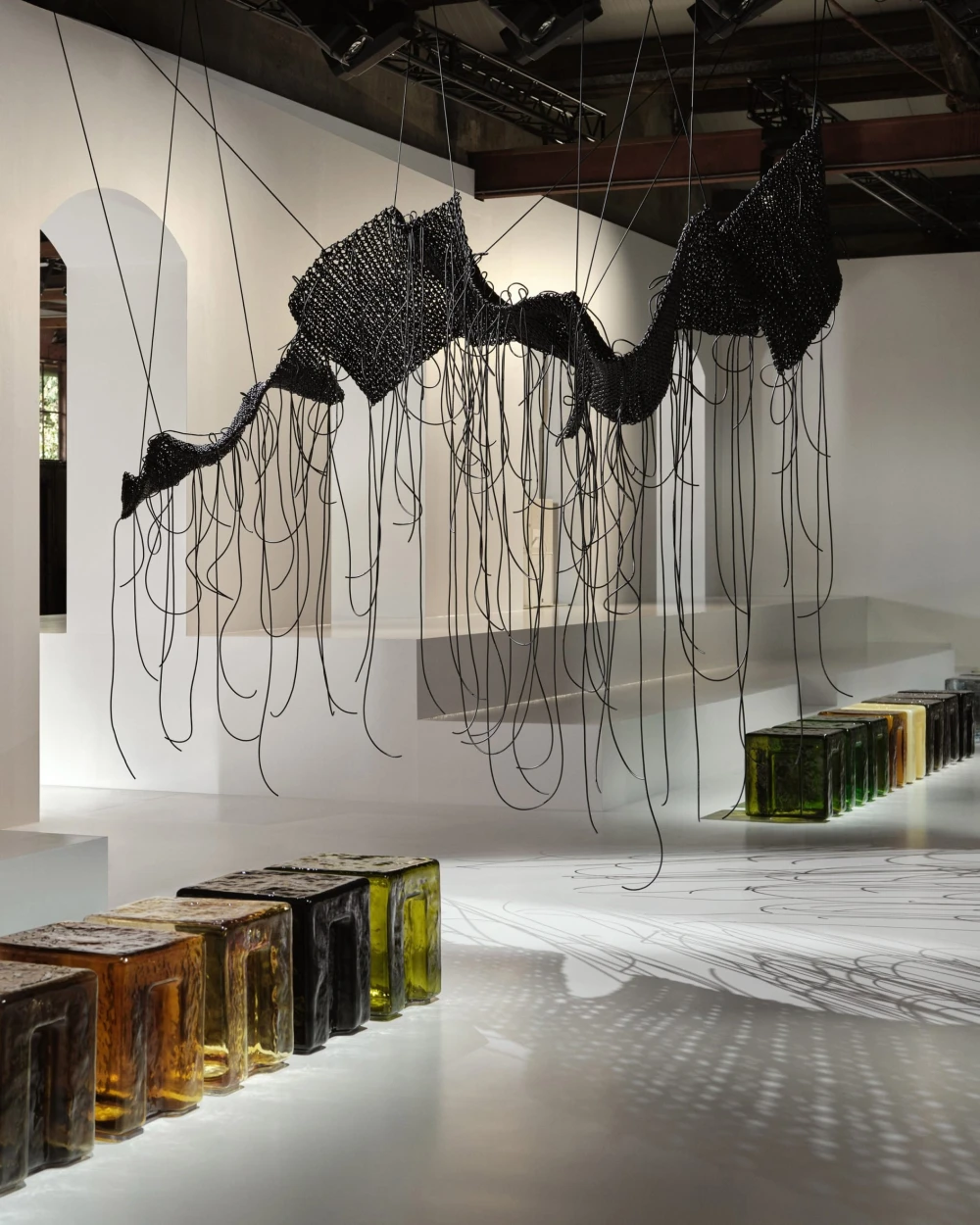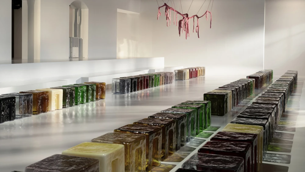 Миланская дизайн-студия 6AM создала табуреты из муранского стекла, напоминающие яркие леденцы. Сидения, созданные для дебютной коллекции креативного директора Bottega Veneta Луизы Троттер, можно было увидеть во время Миланской недели моды 2025. Табуреты выпущены в 10 оттенках зеленого, янтарного, синего и красного цвета.