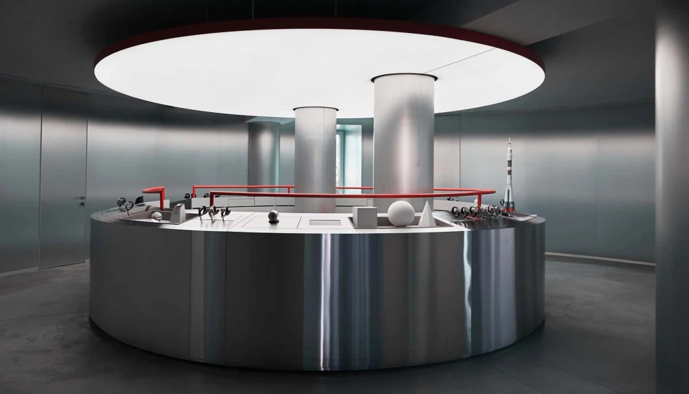По просьбе часовой мануфактуры Гарри Нуриев и Crosby Studios оформили бутик, музей и кофейню в Петергофе. Ретрофутуристичные интерьеры вдохновлены образом космического корабля, а сам брутальный проект помог превратить пространство в новую точку притяжения для туристов.