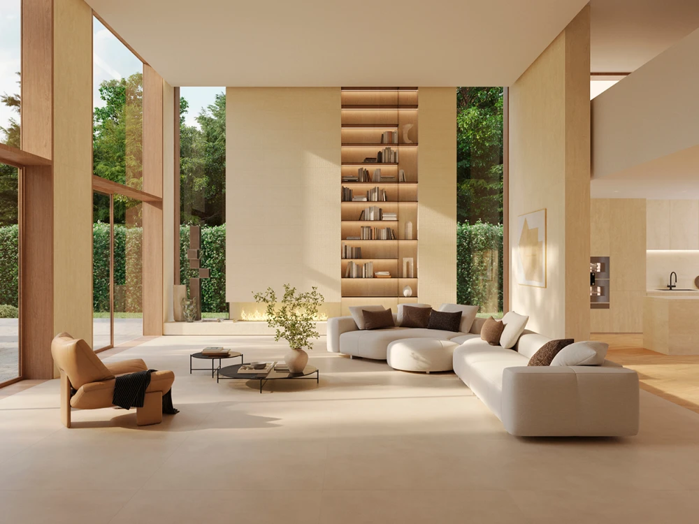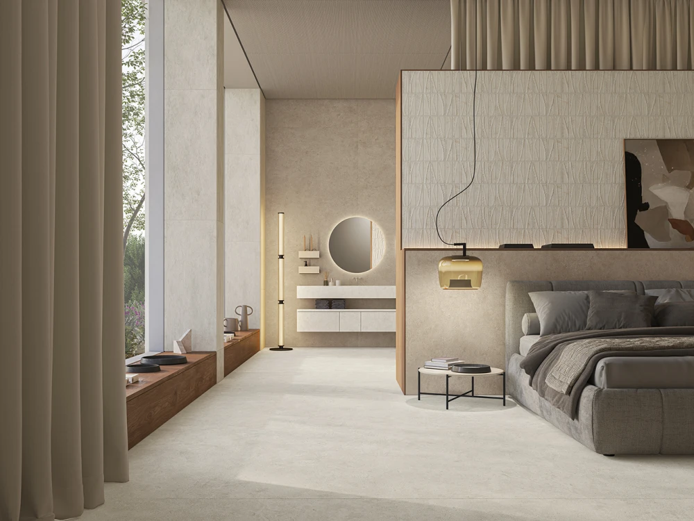 Восхищает эксклюзивными 3D-поверхностями, где классическая итальянская традиция обработки травертина встречается с инновациями, создавая атмосферу элитной гостеприимности.