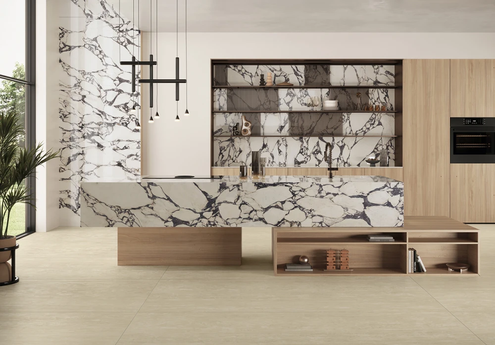 Настоящее визуальное шоу, где крупноформатные плиты с рисунком из семи редких природных камней превращают любое пространство в произведение искусства.