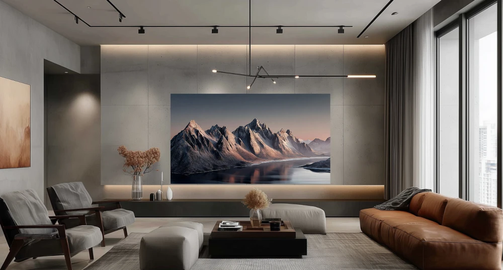 Большие телевизоры часто выбирают для просторных домов с панорамными окнами. Избыточный свет раньше создавал проблему бликов — изображение теряло четкость, и телепросмотр был комфортным только в вечернее время или при закрытых шторах.