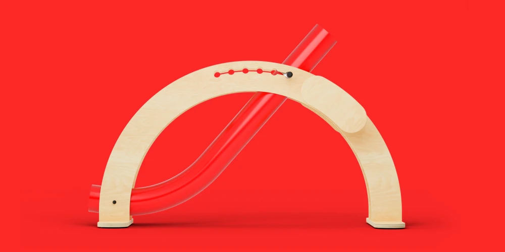Особенность конструкции заключается в поворотном штифте и специальных вырезах, которые позволяют легко изменять наклон рампы — благодаря этому дети получают больше контроля и вовлеченности в процесс игры. Кроме того, в рампу встроена зона для хранения мячей для бочча. Еще одним важным преимуществом является возможность регулировать скорость запуска мячей, изменяя угол наклона трубы.