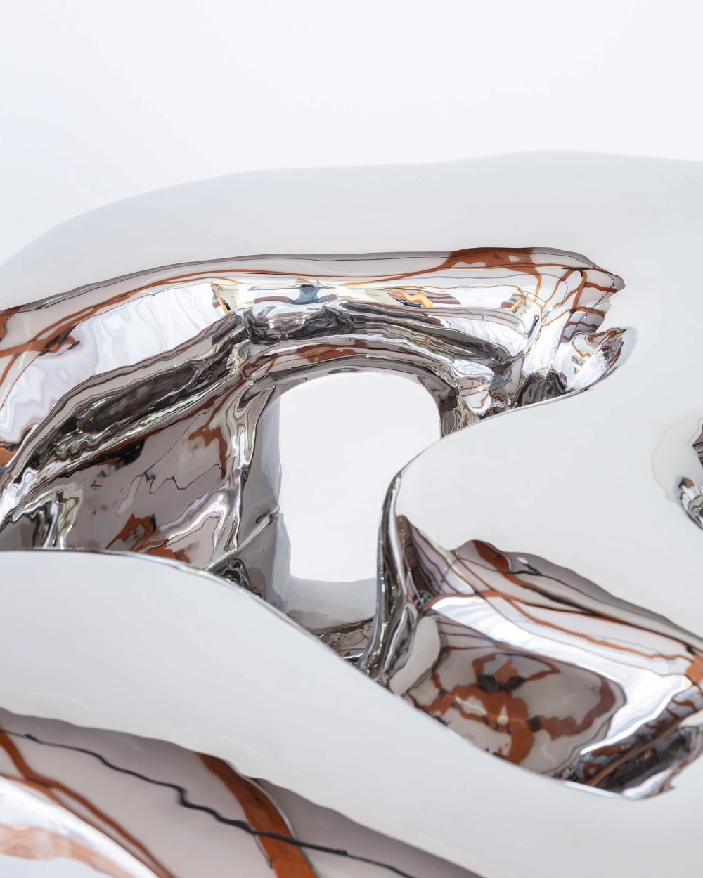 В своих исследованиях мы увлеклись концепцией «идеальной поверхности» XVII века. Это понятие о гладкой непрерывной материи, поддающейся бесконечному делению — но при этом сохраняющей выразительную форму. Тогда физического материала, обладающего этими характеристиками, не существовало. Сегодня его тоже нет, но самое близкое к нему — нержавеющая сталь. Цифровое моделирование также используется для создания бесконечно гибких однородных поверхностей, тем самым продолжая идеи прошлого в современном контексте.