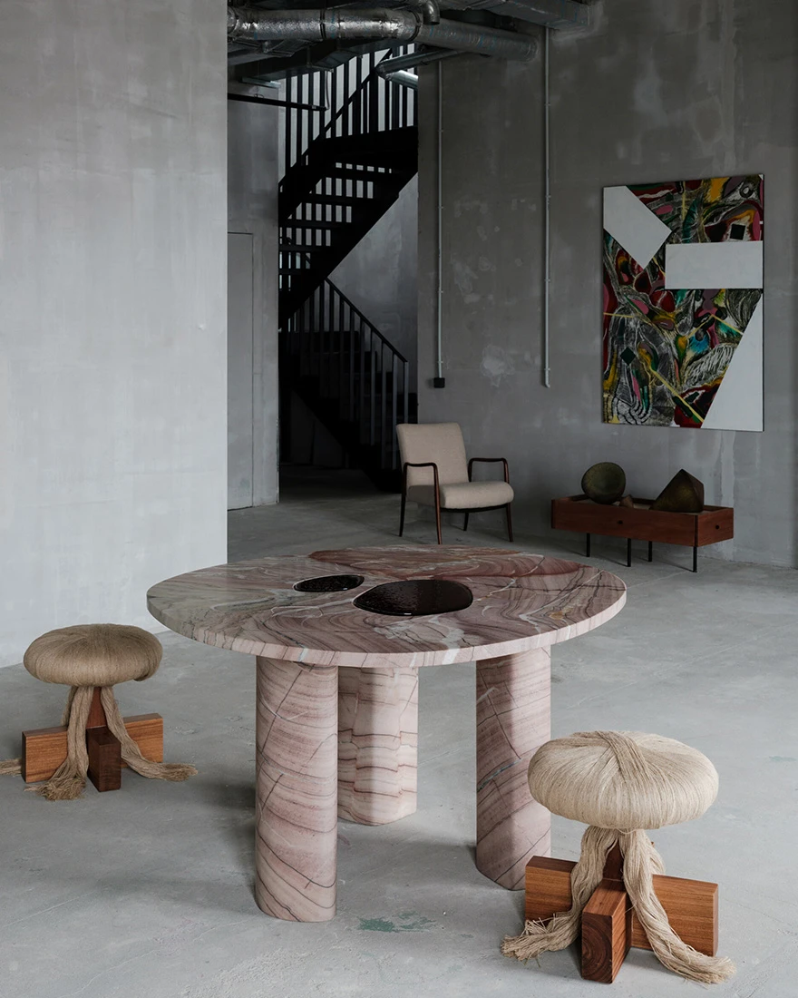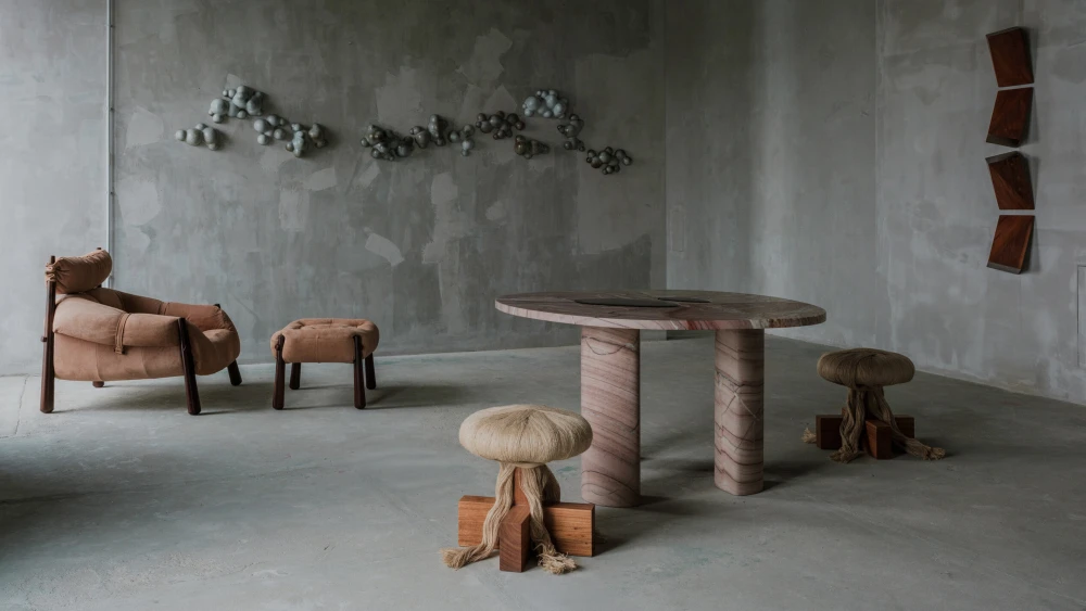 Органичные линии и выразительные формы раскрывают наследие южноамериканской культуры в предметах архитектора Жоаны Васконселуш, выполненных вручную, в объектах из редких пород дерева Занини де Занине, а также в работах Лукаса Реккии из натурального камня и стекла — все они объединены в единую тотальную инсталляцию. Экспозицию также дополняет живопись, керамика и скульптура художников Родриго Алмейды, Кими Нии и Жаклин Терпинс, которые создают целостный опыт погружения в эстетику Бразилии.