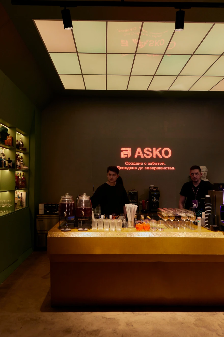 Знакомство с инновациями бренд превратил в мультисенсорное путешествие. Ключевым событием вечера стало иммерсивное визуально-музыкальное шоу, в котором «научные лаборанты» рассказали историю ASKO. Художественным оформлением шоу выступил визуальный ряд «Невидимый мир бактерий» в стиле Cosmodernism от художника Camil Czapiga, подчеркнувший стремление бренда к чистоте, гармонии и совершенству.