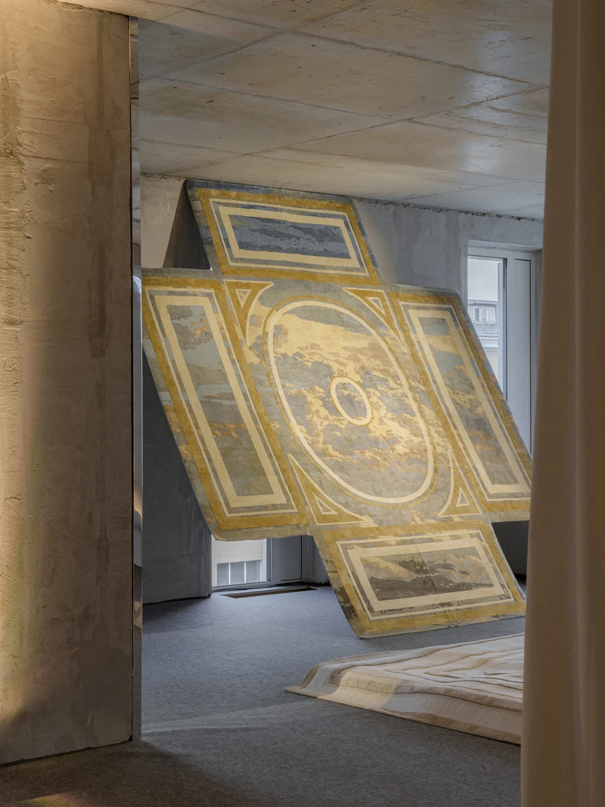 Экспозицию гармонично дополнили предметы из коллекций премиальных брендов, таких как Molteni&C, Imperfetto Lab, Halo edition, а также коллекционный стул от Julian Mayor, предоставленные партнером в наполнении пространства — интерьерным шоурумом HOMEART. Сама площадка — видовой пентхаус LUMIN — поддерживает идею коллекции Modern History, которая была вдохновлена красотой парижских дворцовых потолков XVII века: с помощью ковров Пьер Гоналон словно переносит их на пол. LUMIN органично продолжает эту эстетическую линию. Пространство пентхауса с большой площадью и панорамными окнами в пол позволяет показать ковры в масштабе, которого требуют произведения ручной работы, а также подчеркивает важность интеграции искусства в жилую среду.