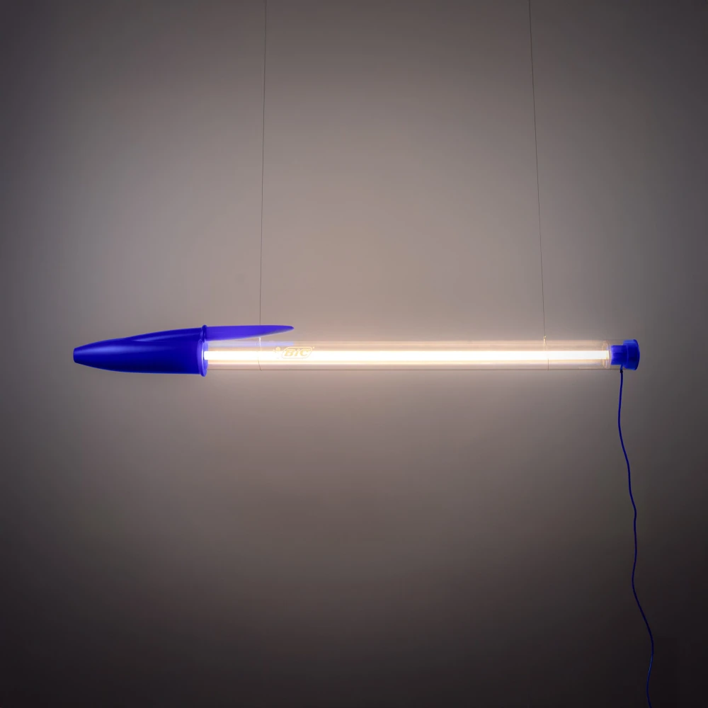 Коллекция включает в себя настенные, напольные и подвесные модели длиной 178 сантиметров. Как и оригинальные ручки, Bic Lamp изготовлена из пластика, а именно из поликарбоната и полиэтилена высокой плотности. «Превращение этого повседневного предмета в огромную лампу показывает, какое влияние эта простая шариковая ручка, созданная в 1950 году, оказала на коллективное воображение, — говорит генеральный менеджер Bic по канцелярским товарам Дэвид Каберо (David Cabero). — Увидеть один и тот же предмет и в школьной аудитории, и в переговорной крупной компании — большая редкость. Теперь эти культовые ручки появятся и в домах по всему миру благодаря лампе Bic от Seletti».