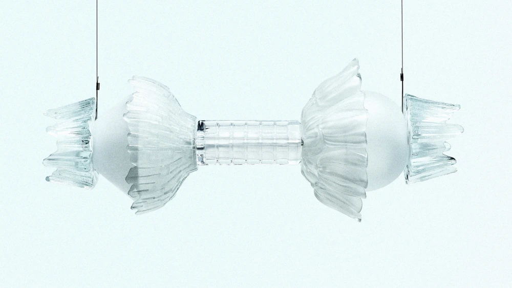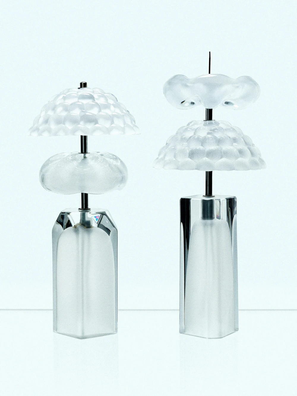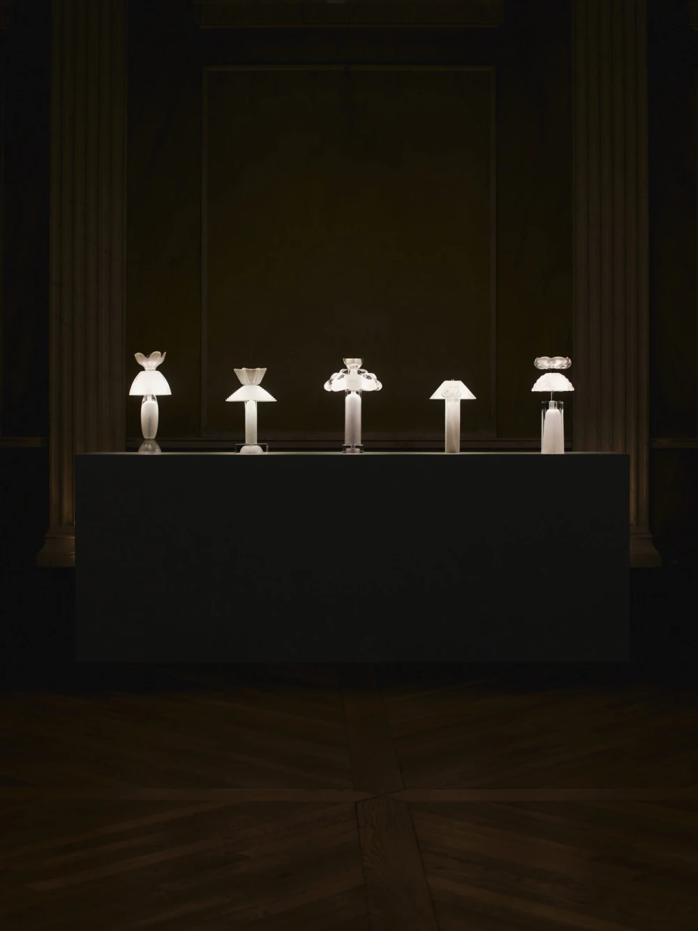 «В Швеции многие узнают эти предметы. Возможно, они стояли в серванте у вашей бабушки. Взять их и поместить в современный контекст — вот что мне кажется интересным. Это исследование коллективной памяти и ее трансформации со временем. Чтобы объединить разрозненные элементы в целостный объект и одновременно скрыть лампочку, все стекло обработано пескоструем — снаружи или изнутри, в зависимости от состояния. Когда вы работаете с переработанными материалами, нужно следовать тому, что подсказывает он сам. Мягкое матовое покрытие скрывает сколы и царапины, появившиеся за годы эксплуатации».