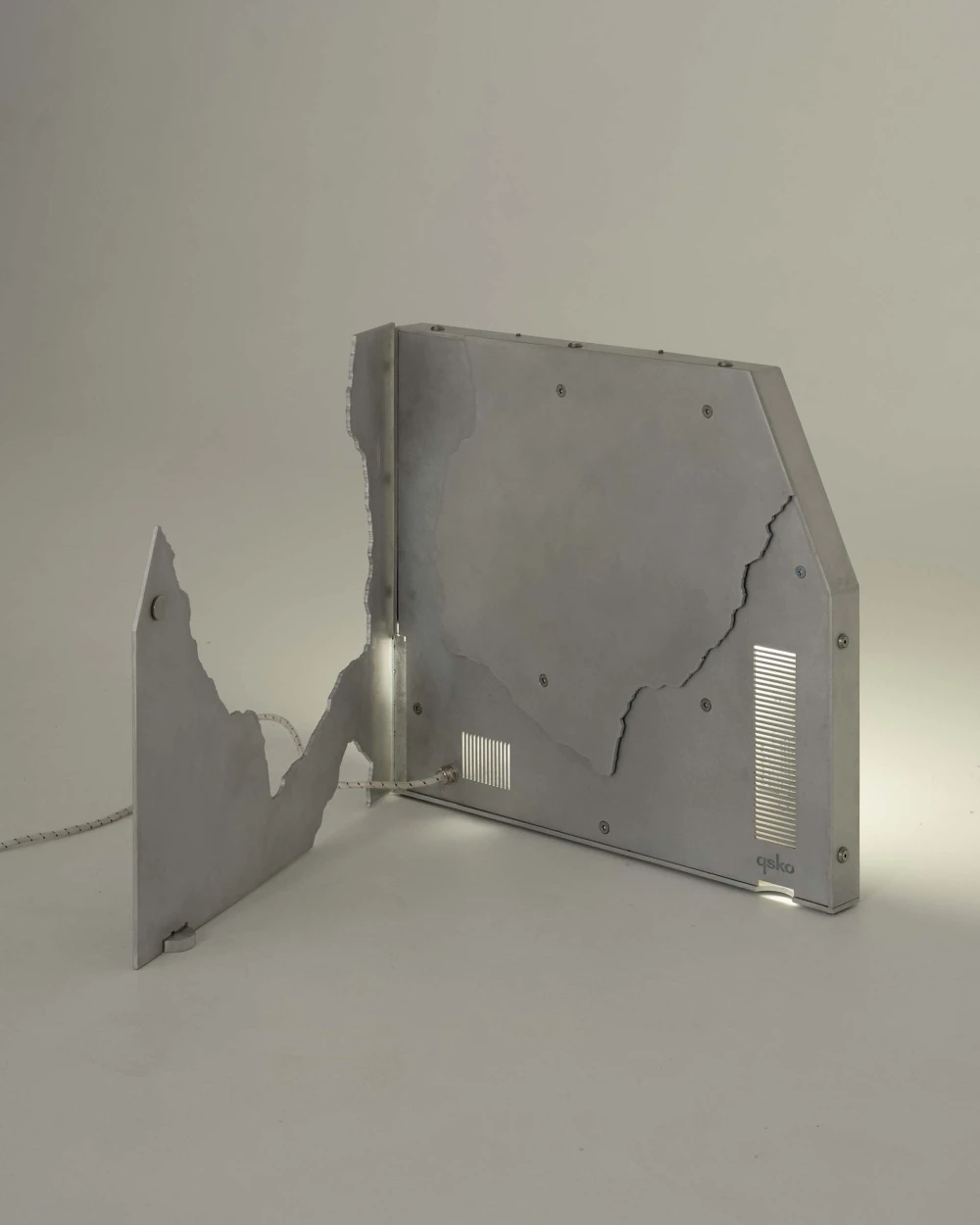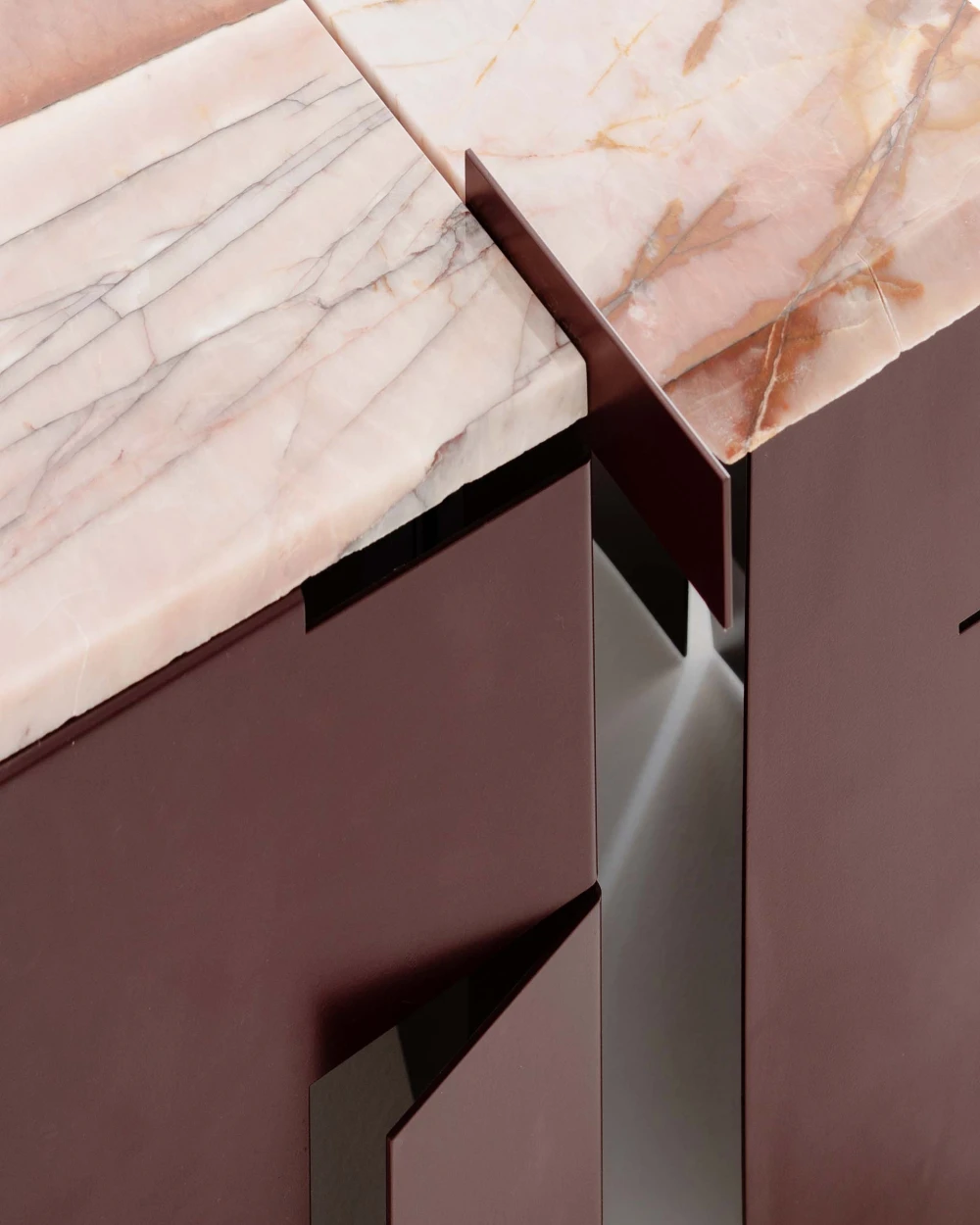 Я работал в бюро Kozeen + Rueda и принимал участие в проектировании бутика Alrosa Diamonds. Для интерьера мы подбирали камень, и, собрав на производстве ненужные обломки, я решил создать из них предметы интерьера. Каждый из камней имел уникальную текстуру и силуэт, это и стало отправной точкой. Я отталкивался от уже существующих случайных срезов и природных сколов. И принял решение никак не изменять и не дорабатывать форму камня, подстраивался под нее, создавая металлические основания и оболочку.