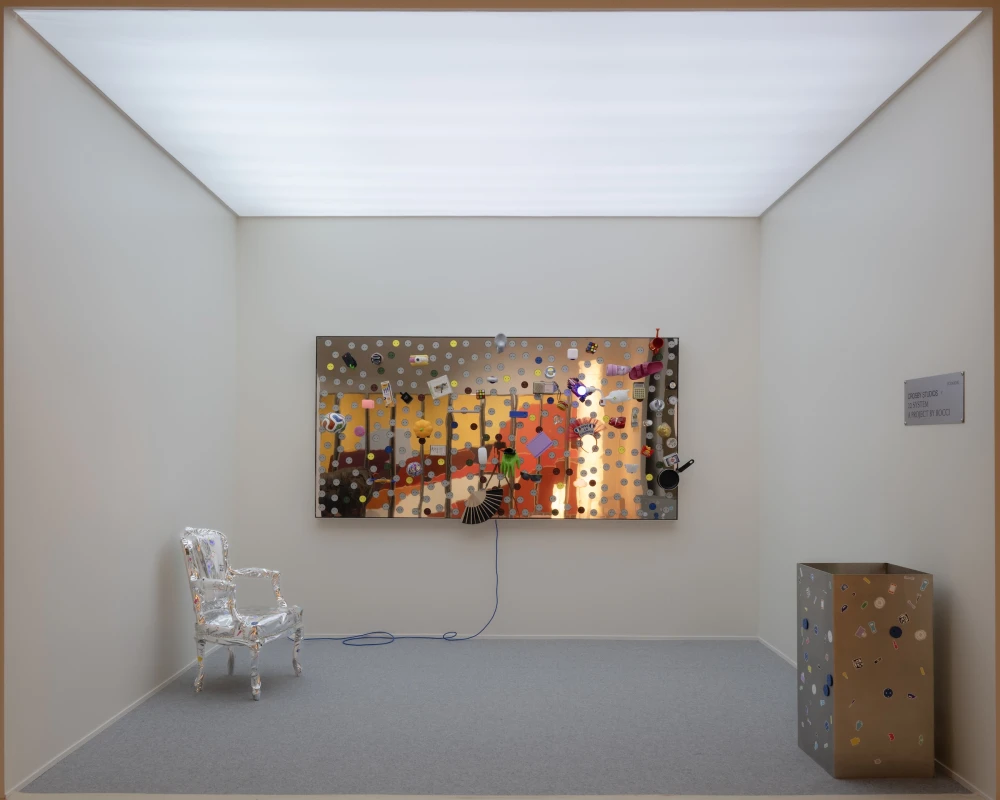 Среди участников заметной стала инсталляция Plug-It, созданная вездесущей Crosby Studios совместно с системой электрических компонентов 22 System, разработанной Омером Арбель, арт-директором канадской компании Bocci. В центре пространства — зеркальные панели, усыпанные разноцветными розетками: посетители могут подключать к ним устройства, и каждый новый кабель буквально меняет композицию работы. Гарри Нуриев предлагает воспринимать электрическую инфраструктуру как живую систему, существующую только в процессе использования.