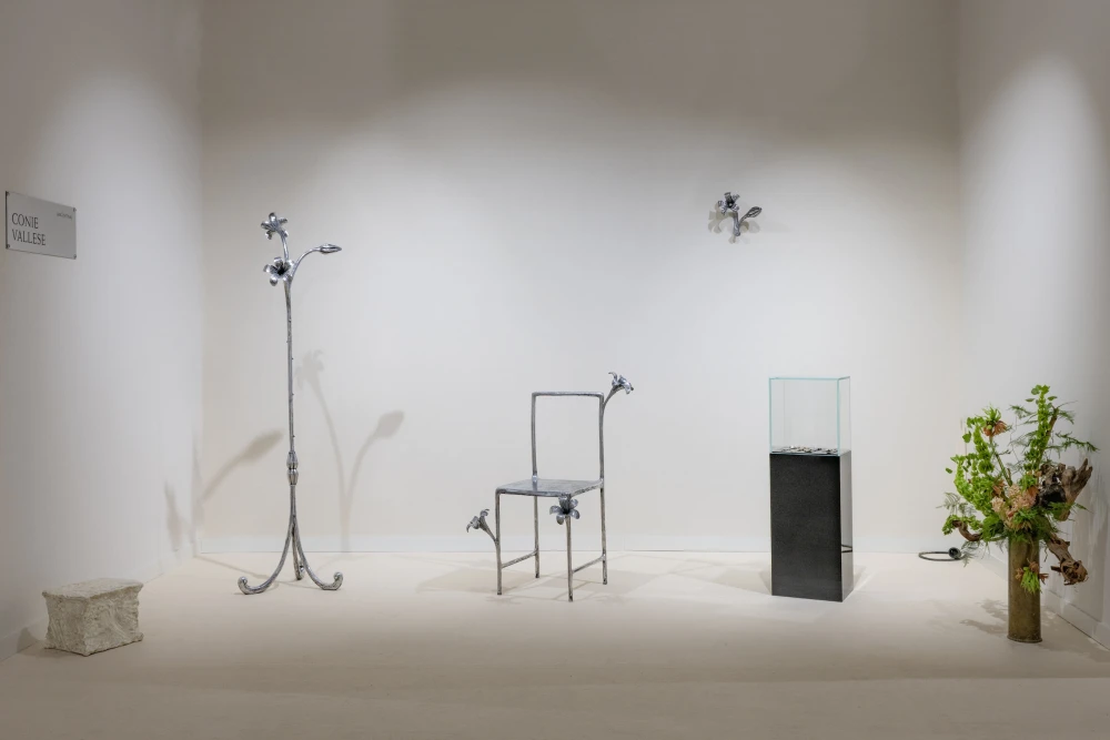 В другой части павильона финский бренд Marimekko открывает архив своих текстильных принтов, показывая путь от ручного рисунка до лазерной гравировки печатных форм на фабрике в Хельсинки. Этот почти музейный раздел напоминает, что за яркими узорами стоит длительный и вполне материальный производственный процесс. Среди более камерных, почти скульптурных работ выделяются объекты аргентинки Кони Валлес. Она работает с бронзой, стеклом и керамикой, создавая предметы, вдохновленные формами цветов и природных структур. В ее работах ощущается хрупкое равновесие между силой и уязвимостью — темами, которые перекликается с общим разговором о материальности и устойчивости.