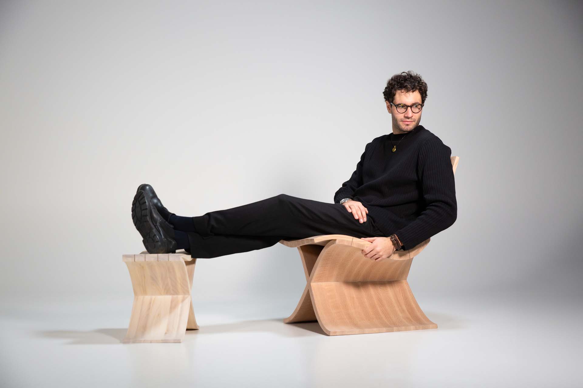 В настоящее время я работаю над серией из четырех предметов, вдохновленных работами финского дизайнера Алвара Аалто, которые он создал почти столетие назад. Для меня этот проект — своего рода дань уважения школе дизайна, сыгравшей важную роль в формировании моих вкусов и принципов работы: это стремление к внутренней гармонии, способной донести идею до тех, кто в дизайне ценит концептуальную и конструктивную глубину. Эта серия включает в себя диван, напоминающий римские ложа-клинии, за которыми люди обедали и проводили встречи, два кресла и журнальный столик.