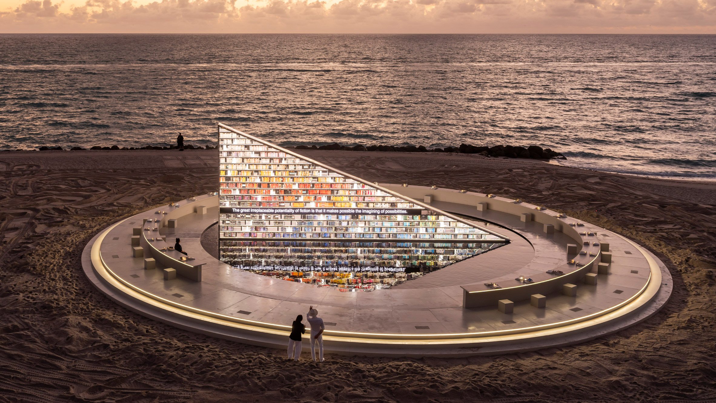 Вращающаяся библиотека Library of Us на пляже в Майами