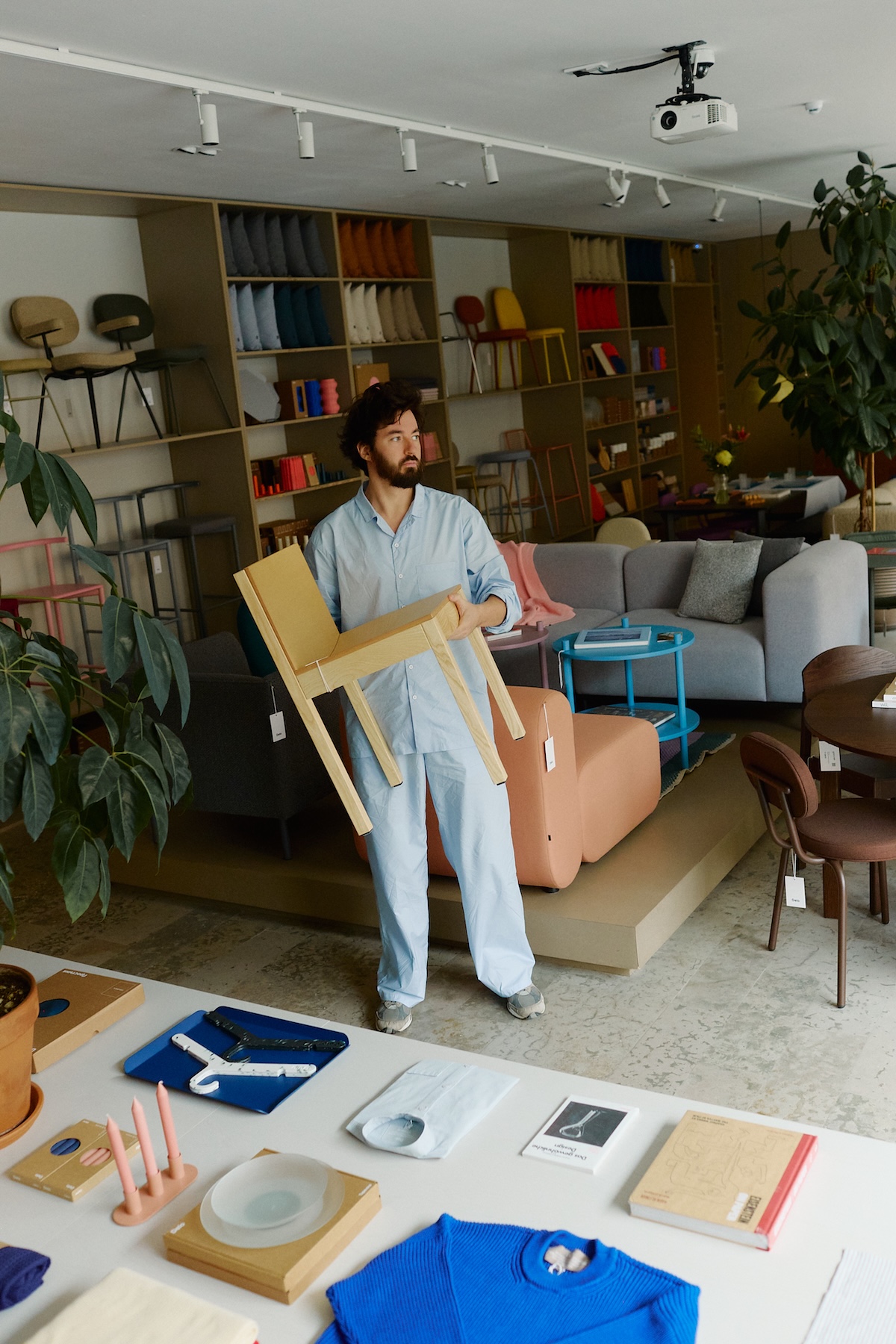 Российский бренд Delo design в первую очередь известен своей минималистичной, но яркой мебелью, однако уже несколько лет в ассортименте Delo есть и посуда, и текстиль, и домашняя одежда. К началу предновогоднего сезона выходит обновленная линейка унисекс-пижам из поплина в пяти новых цветах. «Мы строим и проектируем дома, наполняем их мебелью и предметами, и была идея, что мы тебе под ключ можем сделать жизнь», — говорит креативный директор Delo, архитектор Екатерина Ростова. Главным героям рекламной кампании стал основатель Delo design Арсений Бродач.