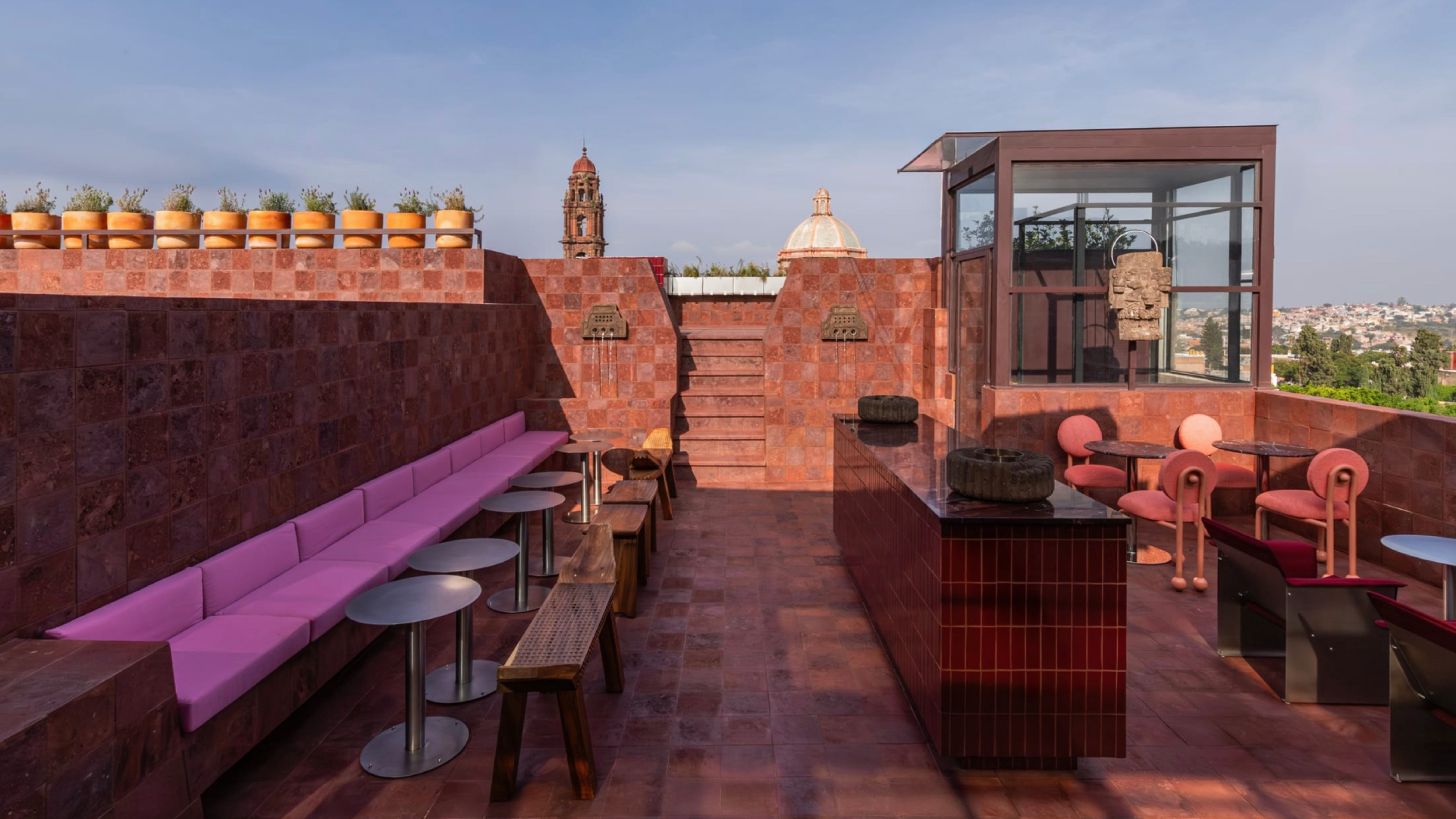 Бар на крыше с отсылками к ацтекской мифологии