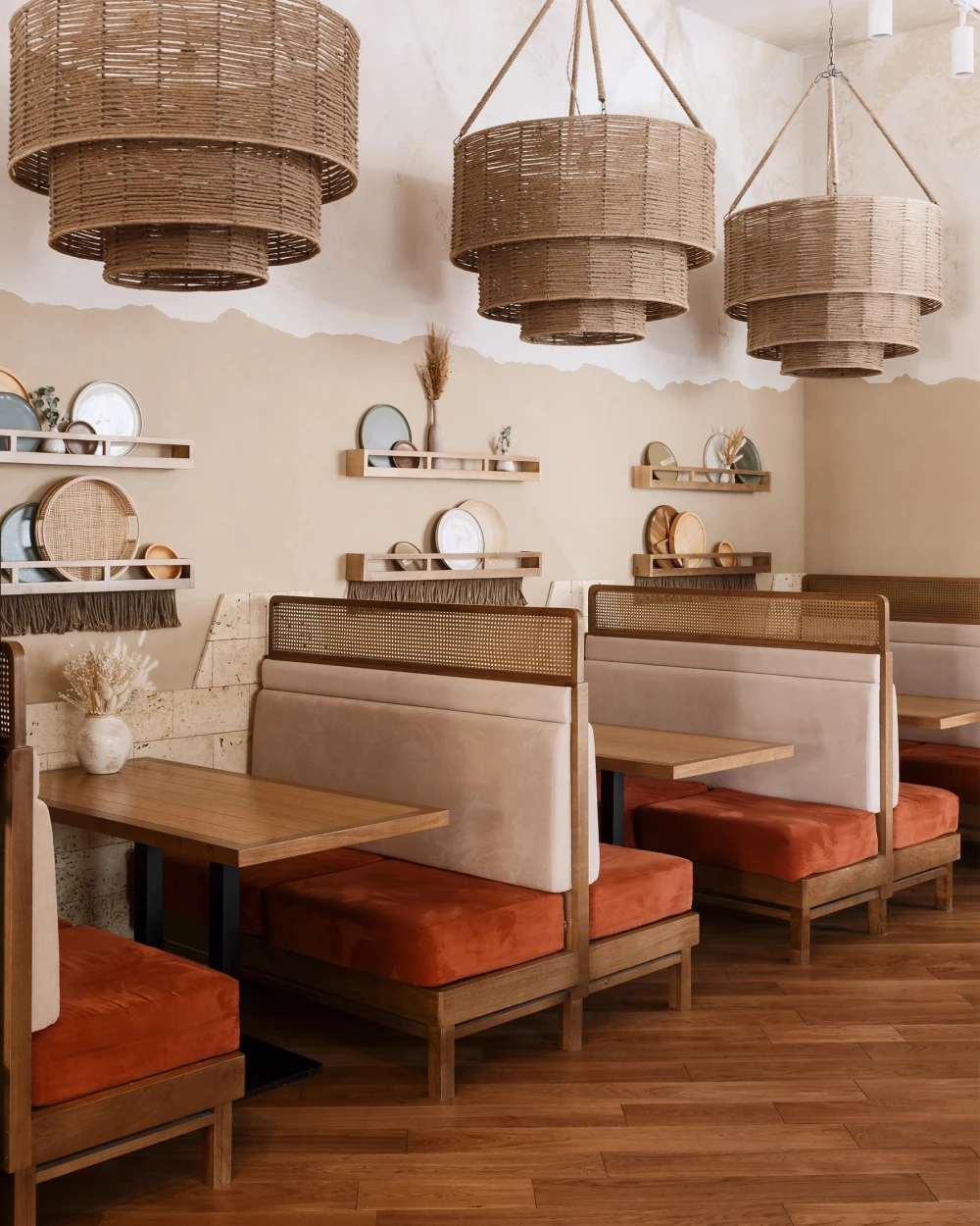Ресторан сети Bona Capona открылся в Outlet Village Пулково. Создатели проекта хотели перенести в Петербург атмосферу провинциальной Италии. Разработку интерьера поручили студии Modgi Group. «Для нас это не первый опыт работы с Bona Capona, но на этот раз мы хотели представить новое прочтение концепции, — говорят дизайнеры. — Прежде всего мы думали об аутентичности и хотели перенести посетителей в маленькую деревушку на юге Италии. Так появился светлый, просторный, пронизанный солнцем интерьер, в котором каждая деталь создает атмосферу тепла и семейных традиций». В основу планировки лег принцип рационального зонирования: так появилась центральная композиция зала с колонной, отделанной ажурной керамической плиткой, диванная зона с акцентными подушками, большие напольные кашпо с раскидистыми оливковыми деревьями. Подиум выделен легким металлическим ограждением с вставками из дерева, дальше расположилась ниша с двойными диванами, плетенными светильниками из джута и отделкой стены из ракушечника. Терракотовый оттенок собирает в единое целое различные материалы, предметы и элементы, а большие панорамные окна наполняют светом пространство с легкой и гостеприимной атмосферой семейного ресторана.