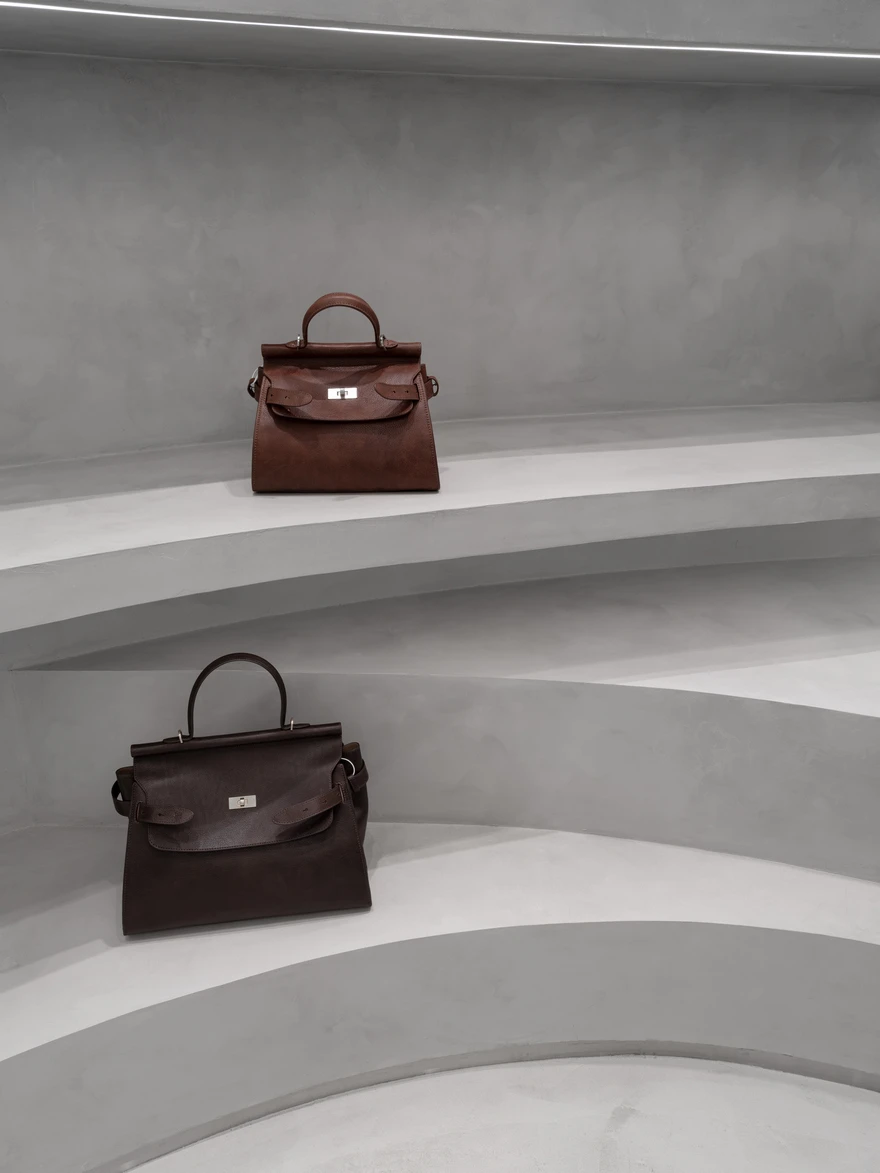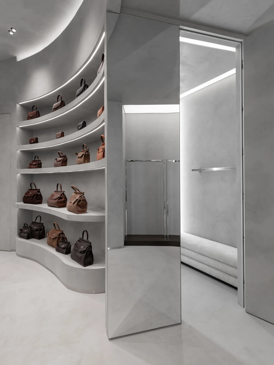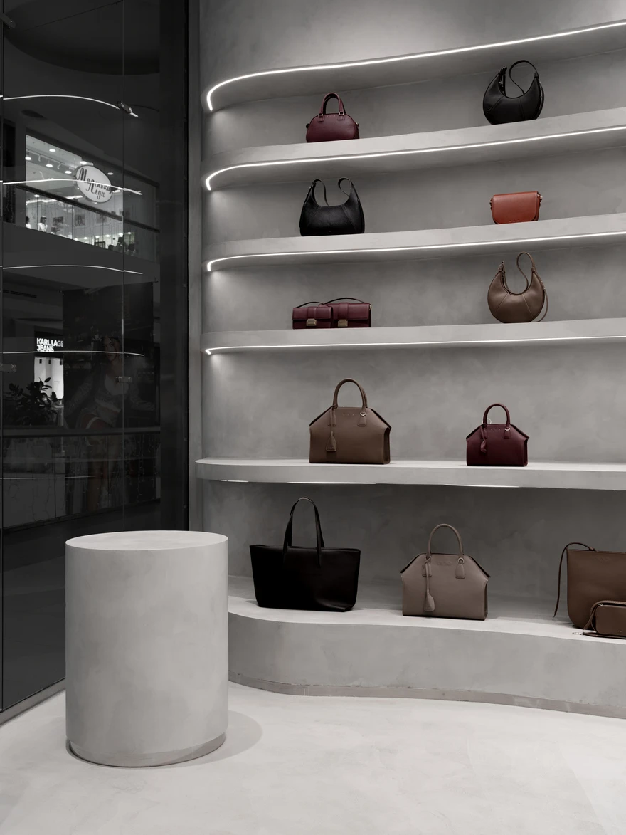 Магазин кожаных сумок со спиральной кассой в Москве: проект Александры Бурмистровой
