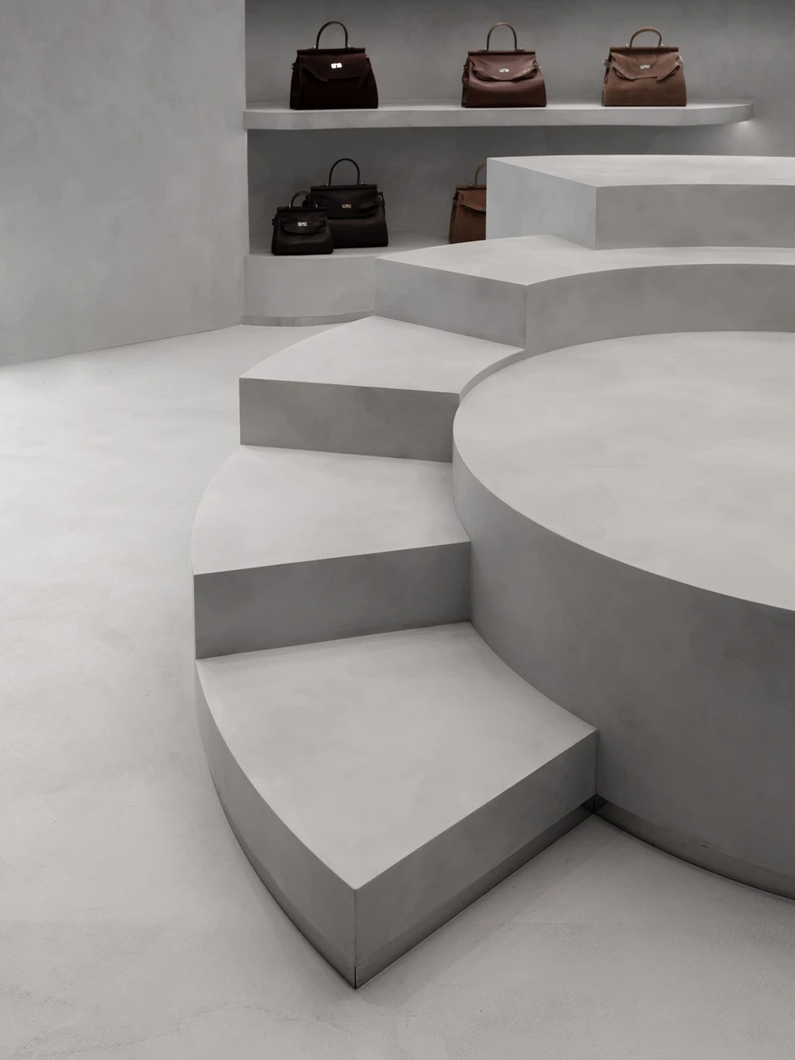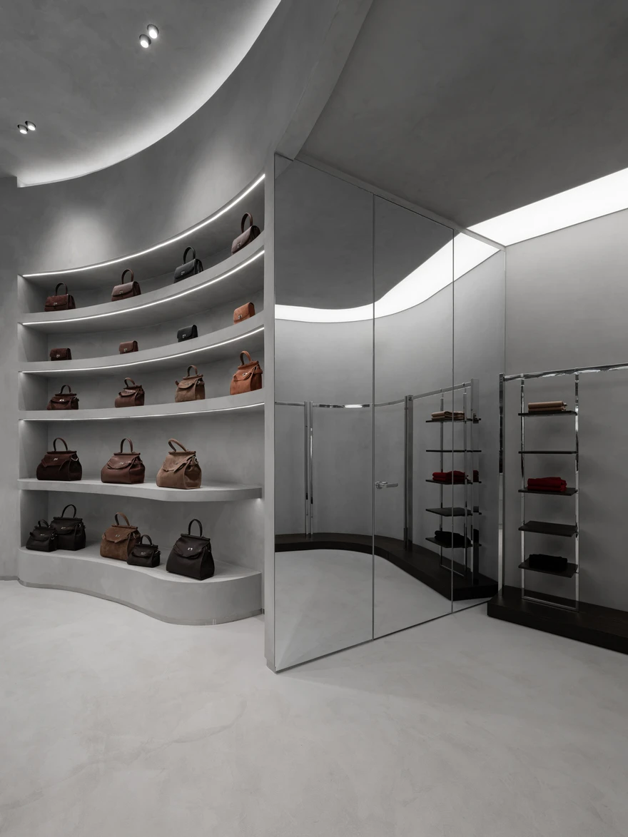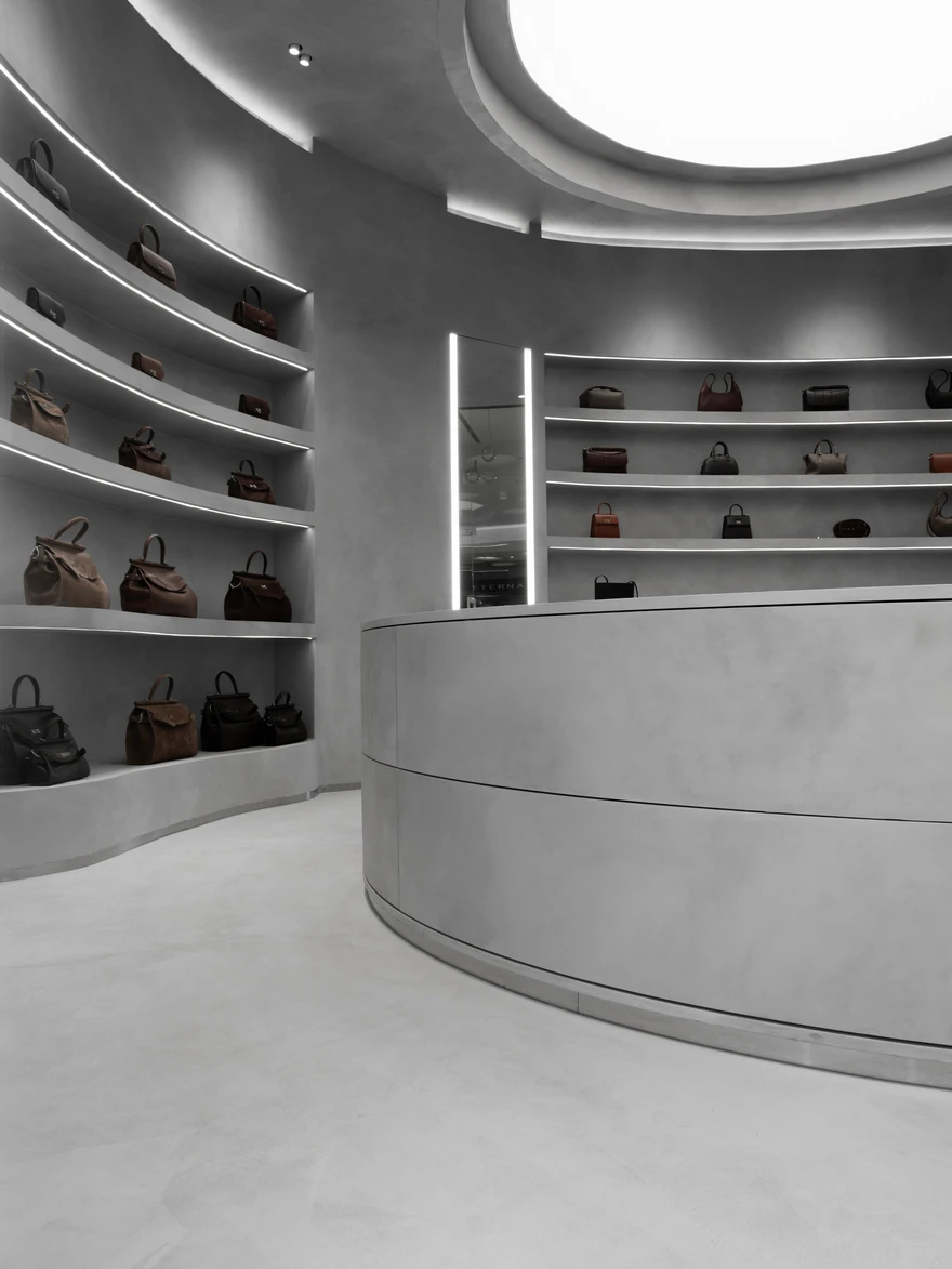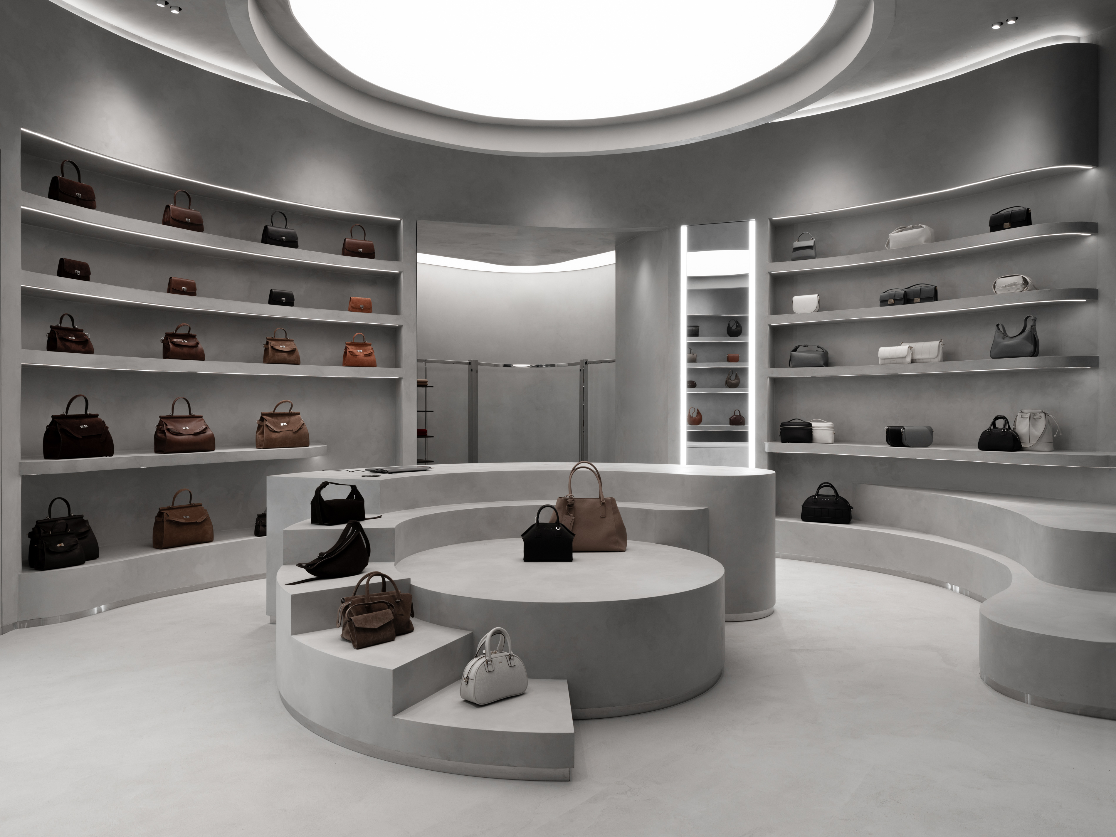 Магазин кожаных сумок со спиральной кассой в Москве: проект Александры Бурмистровой