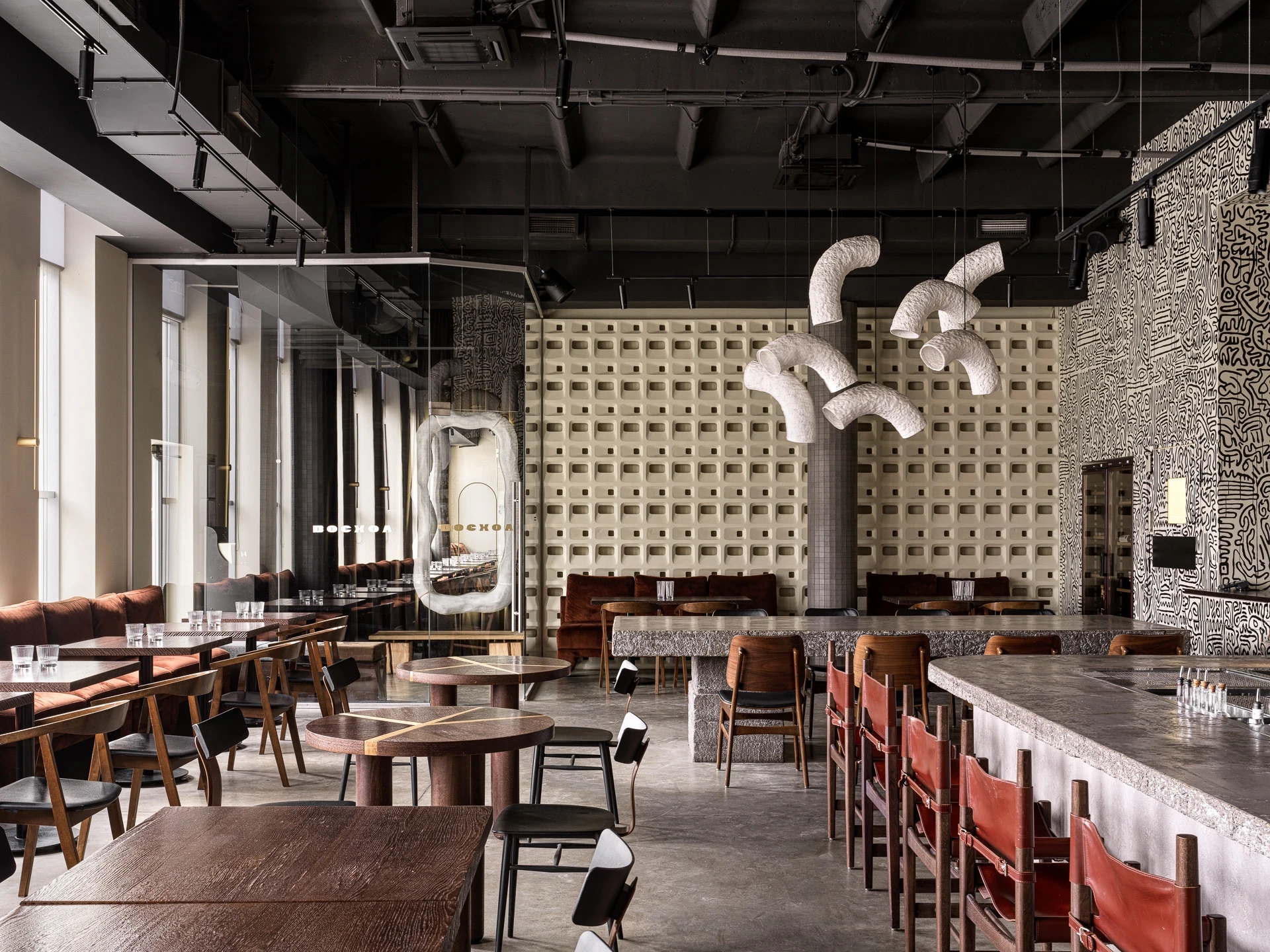 Гармоничный микс разных элементов в интерьере перекликается с самим меню ресторана — в концепции «Восхода» совмещены три разных региона мира: турецкая кухня, греческая кухня и кухня стран Закавказья: Армении, Грузии, Азербайджана.