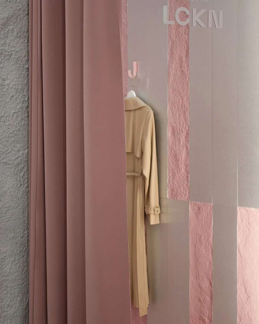 Виктор Ауров и Никита Воронцов, студия дизайна VEA Kollektiv, оформили шоурум молодого бренда женской одежды LCKN. Пространство площадью 125 кв. метров находится на Мясницкой улице и делит помещение с салоном красоты Must by Look. Задачей дизайнеров было вписать шоурум таким образом, чтобы он «не спорил» с салоном красоты. «Ключевым приемом в интерьере является «штрихкод» из ровных металлических панелей и грубой фактурной штукатурки на стене — противопоставление идеальной женственности и дерзости. Серый цвет иронично обыгрывает слоган бренда: Not for a grey mouse. На сером фоне яркие, стильные и броские вещи привлекают к себе внимание. Все это смягчает примерочная, выполненная в пастельно-розовом цвете, — безусловно, женственность должна победить», — убеждены дизайнеры и заказчица.