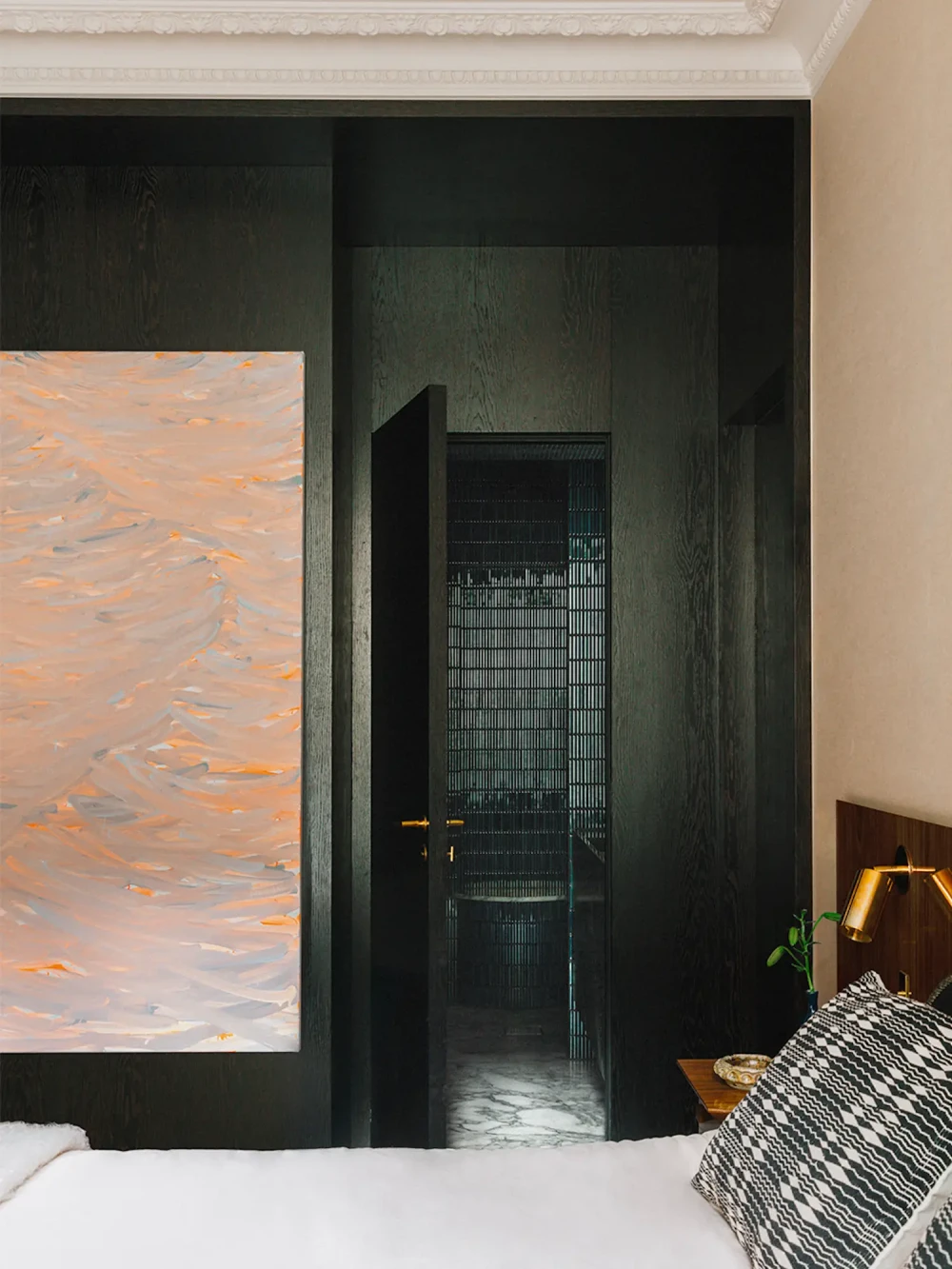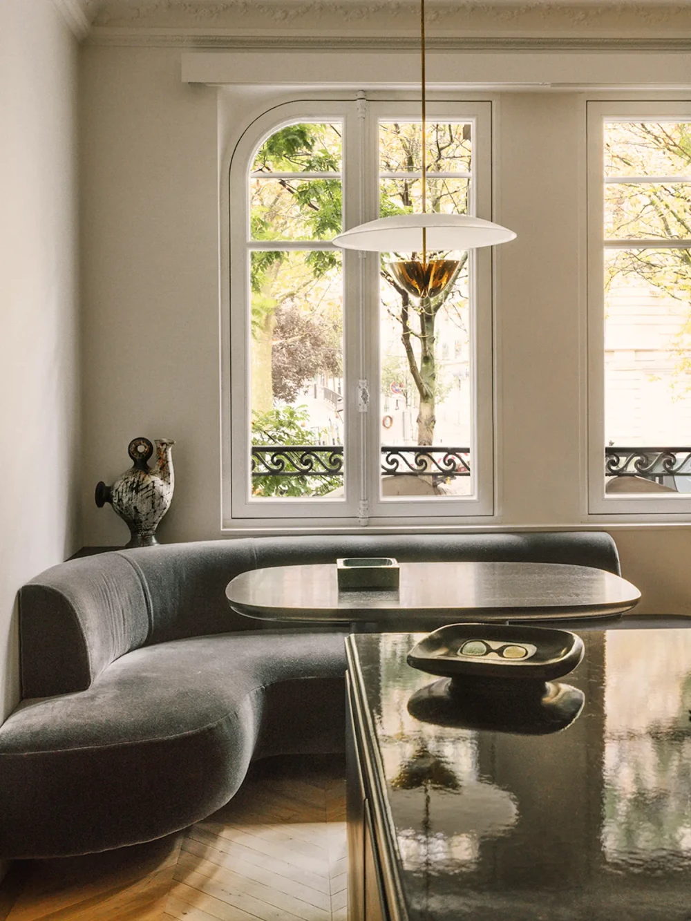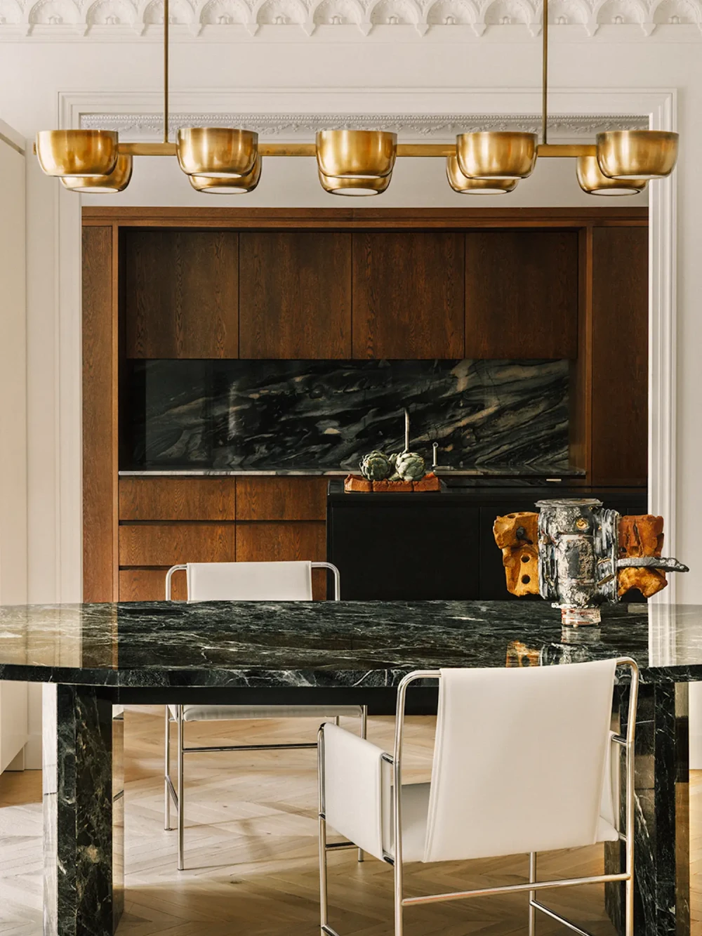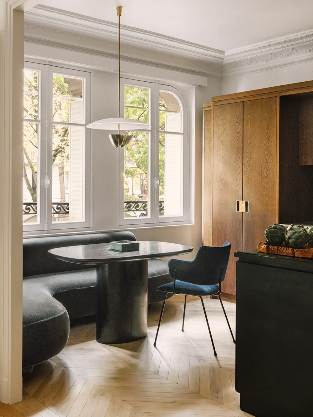 Задача была простой по сути, но сложной в исполнении: нужно было сохранить характерный для периода османовской реконструкции Парижа стиль, при этом привнести в него теплоту, любознательность и элегантность ее владельцев. «Для нас архитектура Османа — это прочная и структурированная основа, — объясняет Ришманн. — Мы хотели смягчить ее и придать ей индивидуальности». Османовская реконструкция в середине XIX века привела к появлению пространств с высокими потолками, замысловатой лепниной, паркетными полами и высокими французскими окнами. Эти элементы помогают создать элегантную и в то же время изысканную архитектурную структуру, которая в данном контексте может служить вневременным фоном для современной жизни.