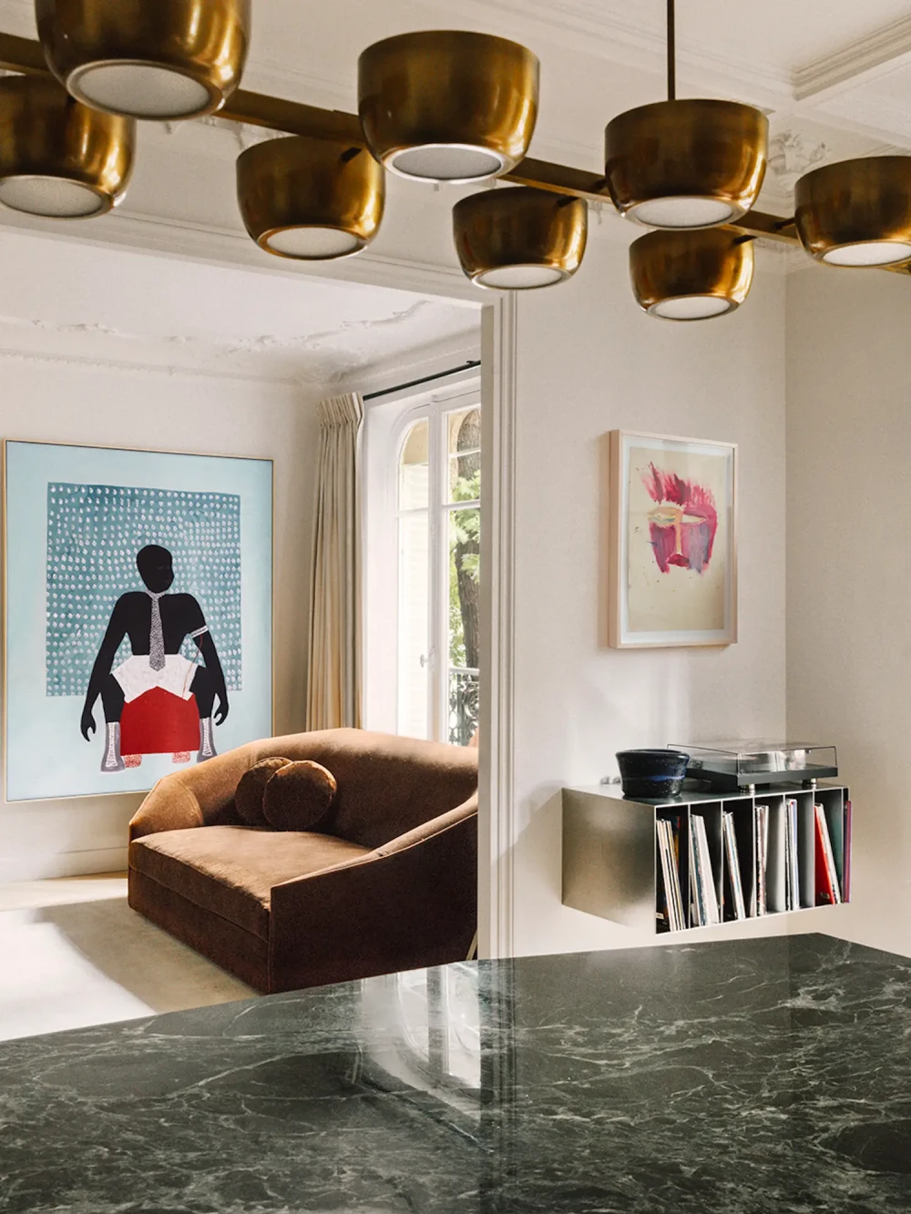 Дизайнеры Батист Ришман (Baptiste Rischmann) и Гийом Жибер (Guillaume Gibert) из парижского бюро RMGB бережно восстановили апартаменты в историческом здании на Монмартре. Архитектурное наследие XIX века — лепнина, паркетные полы и французские окна — органично сочетается в этом интерьере с современными элементами, которые отражают характеры и вкусы заказчиков. Семейная квартира наполнена историей своих владельцев — людей, чья жизнь была неразрывно связана с модой, путешествиями, искусством и архитектурой.